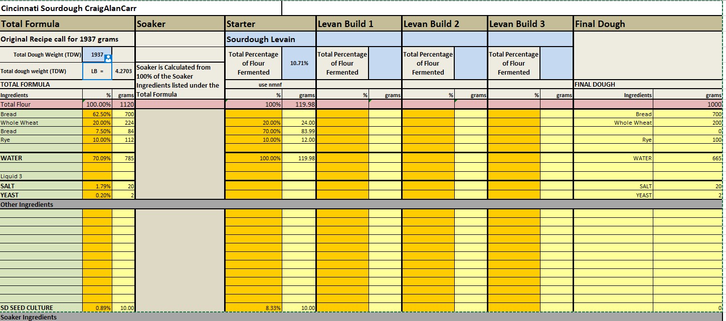 I started with the San Joaquin Sourdough for  a basic concept and then took the starter and bread formulas to what I preferred by adding a little rye and lowering the hydration to about 70%.  The final version showed here also has about 0.2% Instant yeast for an additional little kick.  I build the levain using the nmnf techniques and after the bulk ferment I put it in the fridge for about 20 hours.
