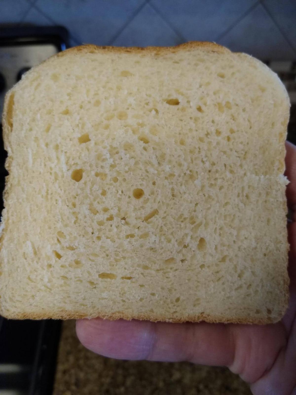 Not too bad! I think if I had let it warm up and rise a bit more before baking, I would have gotten the square top. It has a very soft crust and crumb, and tastes like - plain bread, lol. I have a personal preference for the various flavors SD and whole grain breads offer, so I am not likely to make this very often. Still, it's worth having as something to do when a basic white bread (or rolls?) are needed.