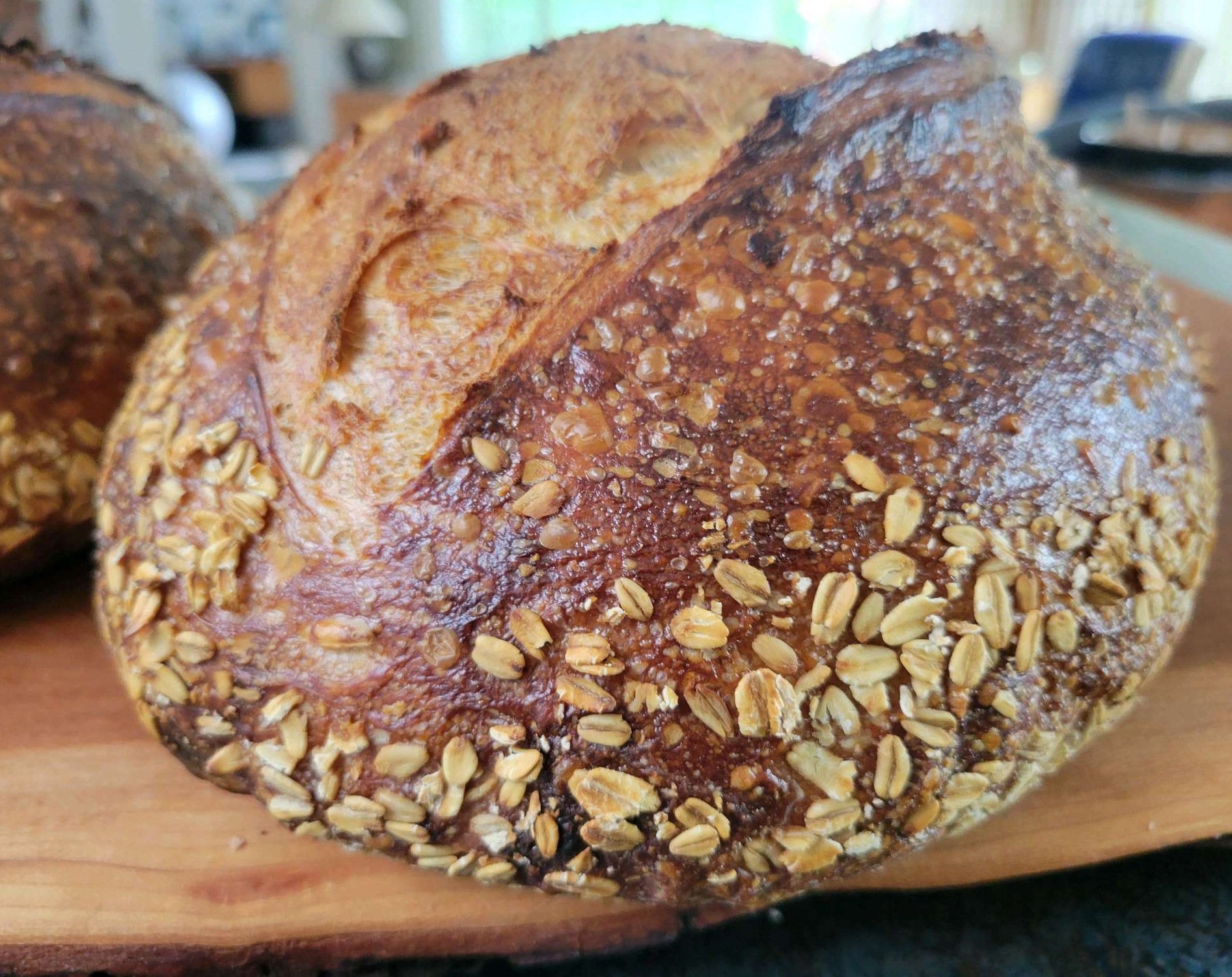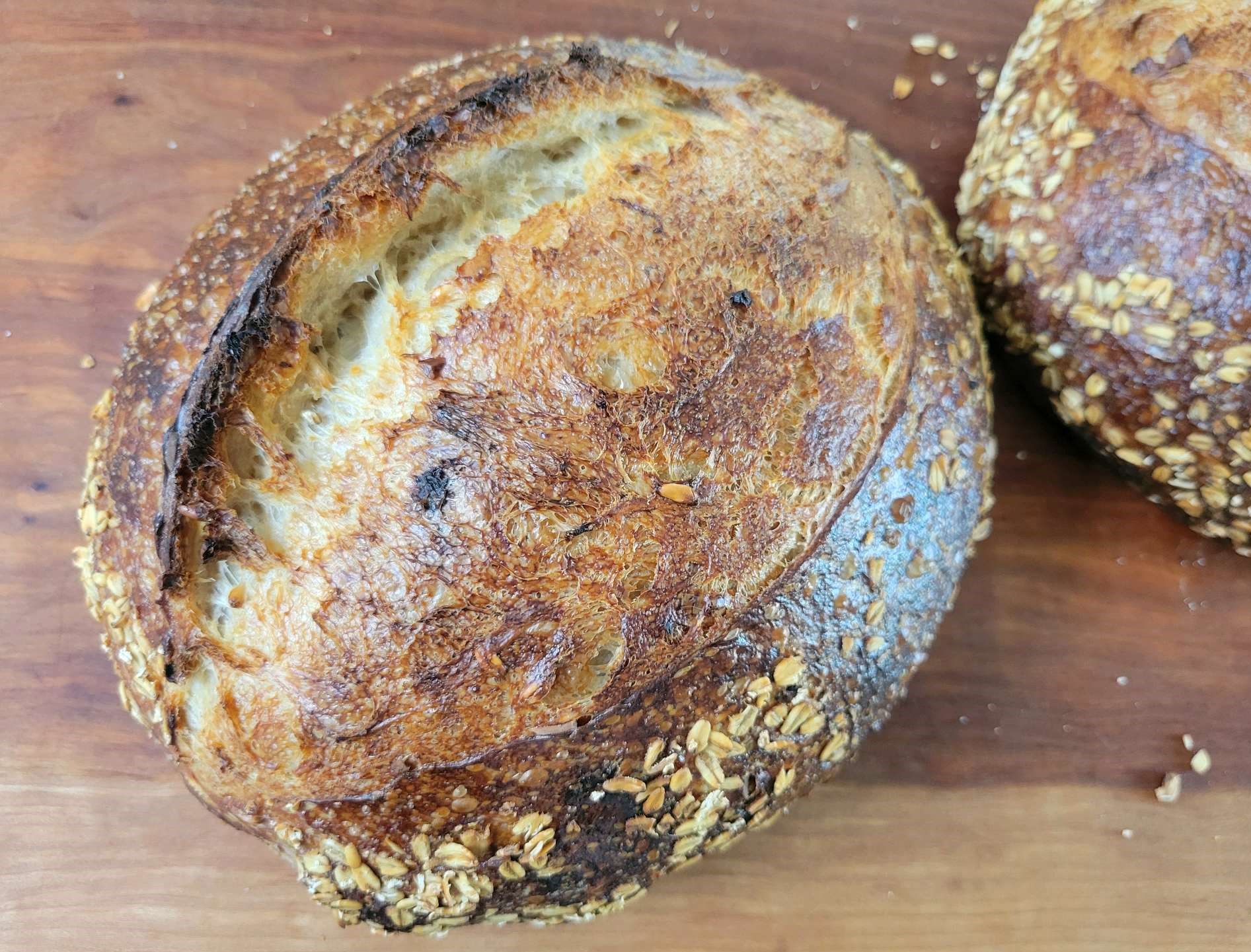 Really nice bake. Oats are one of my favorite add ins as well. Beautiful color to the crust and very nice blistering!