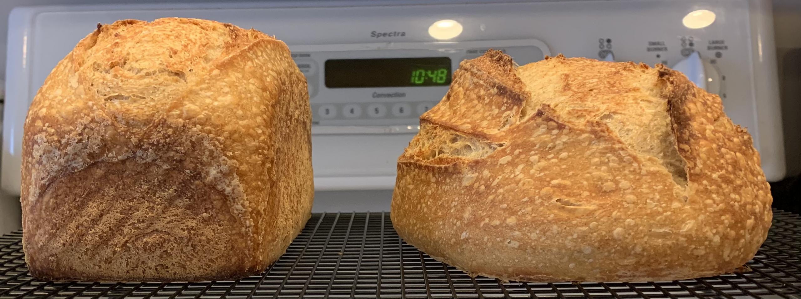 Both of these loaves were for a friend, so no crumb shot. Asked to have one sent, and will post it if I get it. By far the best oven spring I've got in both loaves. Free standing is 15% WW. Pan loaf is 15% rye. Formula is for the WW, but just swap out the WW for rye on the other loaf. I did the exact same method. Prepared both loaves side-by-side last night. Friend wanted one free standing and one pan loaf.