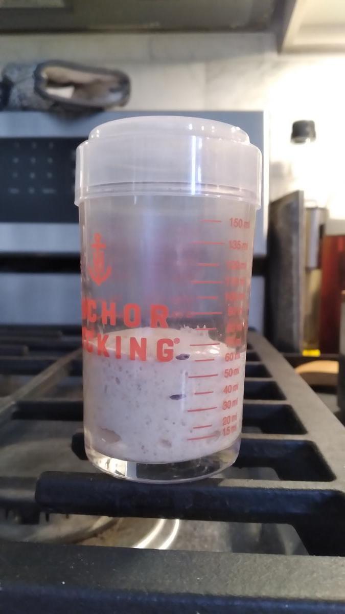 Here is a picture of my dough sample at the end of the bulk fermentation stage: