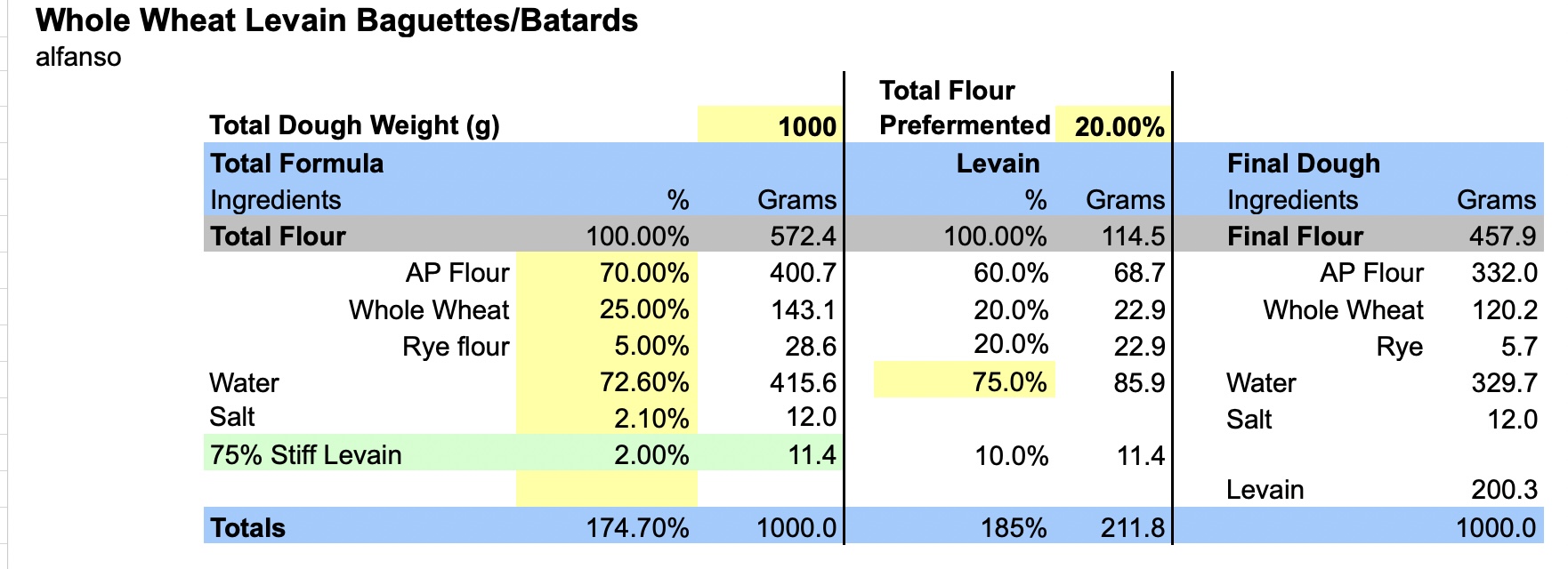 The background: My initial levain, true and trusted friend all these years, was this 75% mixed flour affair, and from that grandpa sprouted all subsequents. These past two years I seem to always bake with the 100% hydration AP levain, and occasionally work some other levain requirement off that.