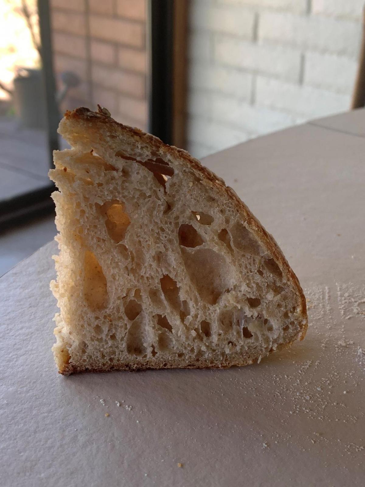 Earlier this week and came across Bob's Red Mill Scottish Oatmeal. The oats are still stone ground but are much finer. In my latest attempt I cooked the porridge and then added it with my salt after a fake-autolyse (flour, water, and leavain.) I patiently let the dough bulk longer than usual at 4 hours ( I'm high altitude and hot house), and let the final proof overnight in the fridge. The results have been my best so far! The crumb was (Actually!) custardy without being gummy and the oats disintegrated and imparted a definite nutty flavor. Shaping super wet dough still needs practice and I think I will let the bulk go on a little longer next time. Regardless, this has been such a difficult bread to tackle and it's nice to see progress!