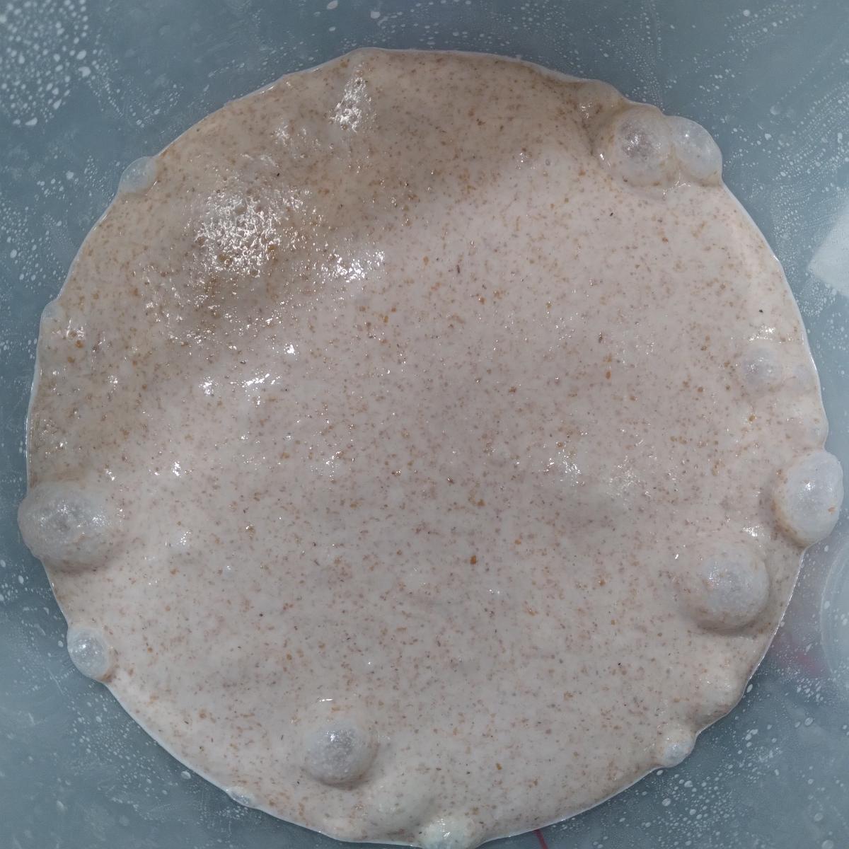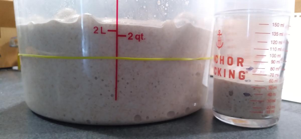 Proofed 20mn at 26°C (Vol*75% in the aliquot jar) then Fridge overnight at 4°C