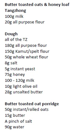 I did more cooking than baking these last 3 weeks. But I did manage to squeeze in some bakes. My husband said he likes oat and honey breads too (this is after telling me he liked the swirly soft loaves and crusty ones, flat ones..) So, I set out to make him something to taste test, so far I've made these loaves with and without discards; 5 loaves later, it's safe to say he likes this bread! I love the hint and smell of honey in this bread. Also, they keep me full! Baked at 160-180°C 45-50 minutes (I use a glass loaf pan).