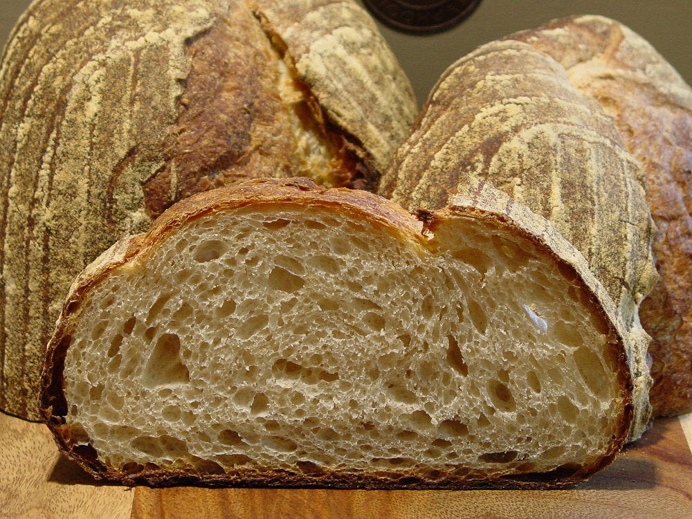 On to the results of the side-by-side tasting. It really paralleled nicely with the aroma observations. All were very nice, with the same basic flavor. The differences were mainly in acidity. The day-7 loaf had a wonderful complex and bready taste, but no real reaction in in the back of my mouth where the sour taste receptors are. The 21-day loaf had a little sourness in the aftertaste, and the 45-day loaf had a little more. So a trend of increasing acidity where I didn't think there would be a noticeable difference. The day-29 loaf made from the stiff levain offshoot, was almost identical to the very first loaf, evidence that stiff starters (all else being equal) are milder than their liquid counterparts.