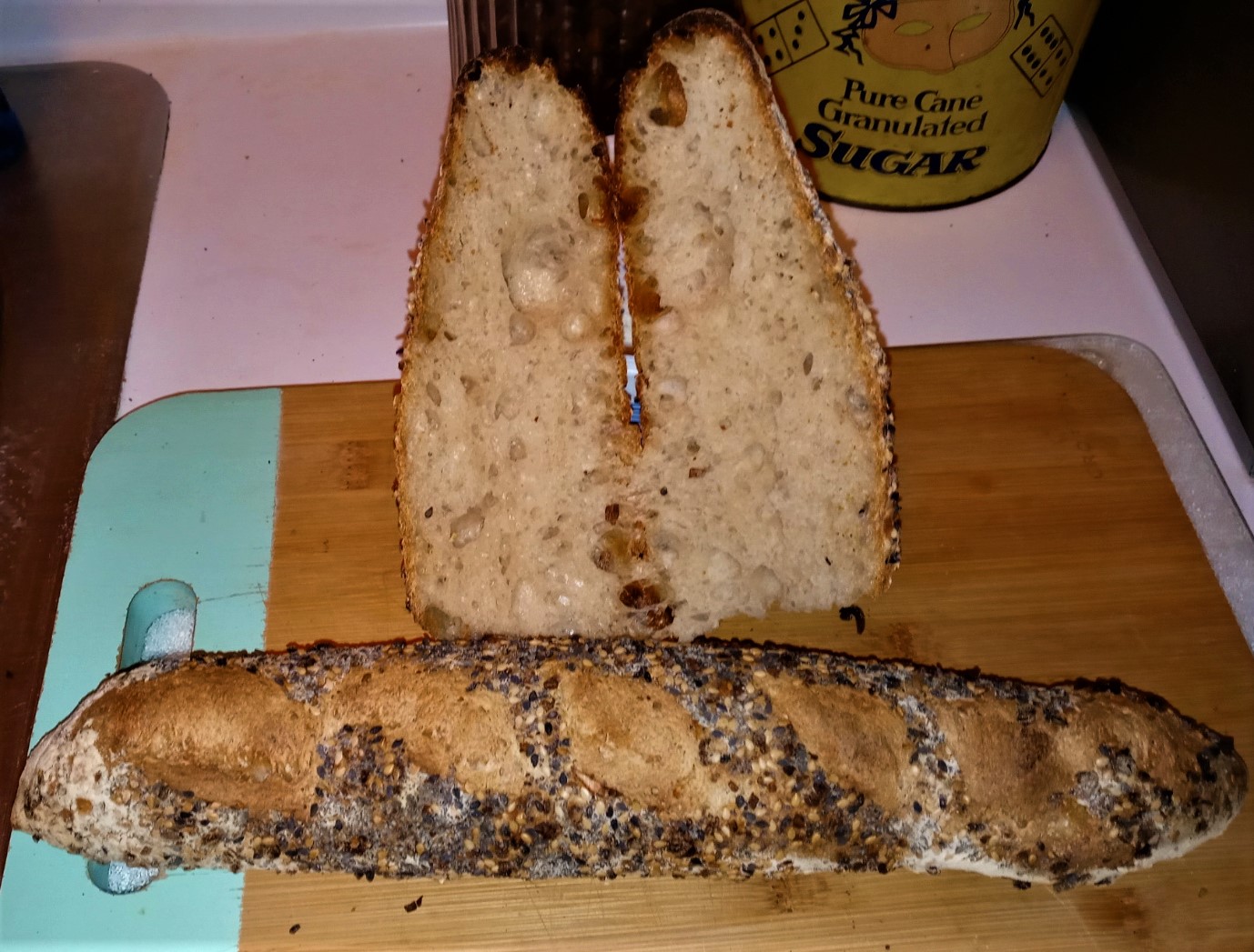 Very nice Sturgis.  I’m so glad you baked these, seeding baguettes was scary for me the first few times I did them, good for you for jumping in with both feet.  I haven’t had the pleasure of trying Trader Joe’s Everything Bagel spice mix but I bet it is delicious on a baguette.