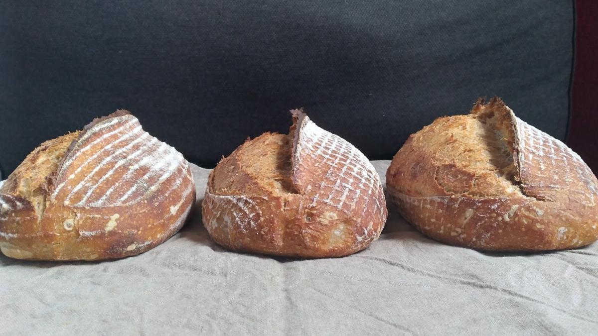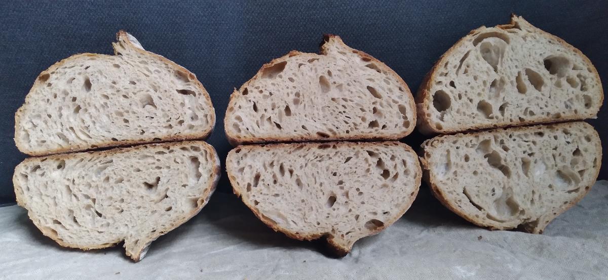 I wanted to experiment different bulk fermentation times so I did a comparison test and prepared 3 identical doughs, following the exact same protocol; the only parameter that differed is the bulk fermentation time: 6h, 7h and 8h at 24C (75-76F) Here are the specifics: 100% hydration starter fully active / 80% AP flour +20% Whole rye flour -Overnight levain (12h at 22C / 71.6F) Ratio 1:10:10 -100% Sifted flour (High extraction La Milanaise) / 500g -75% hydration / 362g -Levain 20%/ 100g -Salt 2,2% / 12.1g - 1 hour autolyse - Add levain / rest 30mn - Add salt then mixing using the Rubeau method + slap and folds for 5-7mn - Rest 30mn / stretch and folds - Rest 30mn / stretch and folds - Rest 45 mn / Strong coil folds - Rest 60mn / coil folds - Shaping at the end of the BF (respectively 6h-7h and 8h after adding the levain to the autolysed dough) - I did my very best to shape the 3 doughs identically but obviously, it is easier said than done!! Fridge directly after shaping at 3C / 37.4F - Baked in dutch oven with lid for 20mn at 240C/464F then 25mn without lid at 220C / 428F (with a baking steel placed on the top shelf of the oven)- Time spent in the fridge before baking*: 6h-BF-dough = 19h - 7h-BF-dough = 17h - 8h-BF-dough = 16h - * Doughs 7h and 8h were baked at the same time whereas dough 6h had to wait 2 more hours in the fridge - The crumb of Loaf 6h clearly looks like a fool's crumb...Is it due to the time of fermentation or the shaping, in your opinion? But I cannot see a huge difference between loaf 7h and 8h..Maybe a more experienced eye could tell me which one is the closest to the most right-on-point fermentation?? The 3 loaves were absolutely delicious anyway! 6h bulk loaf:
