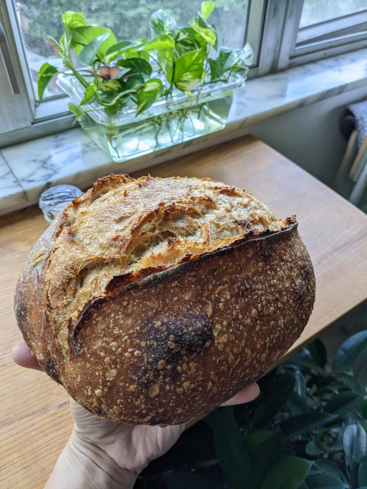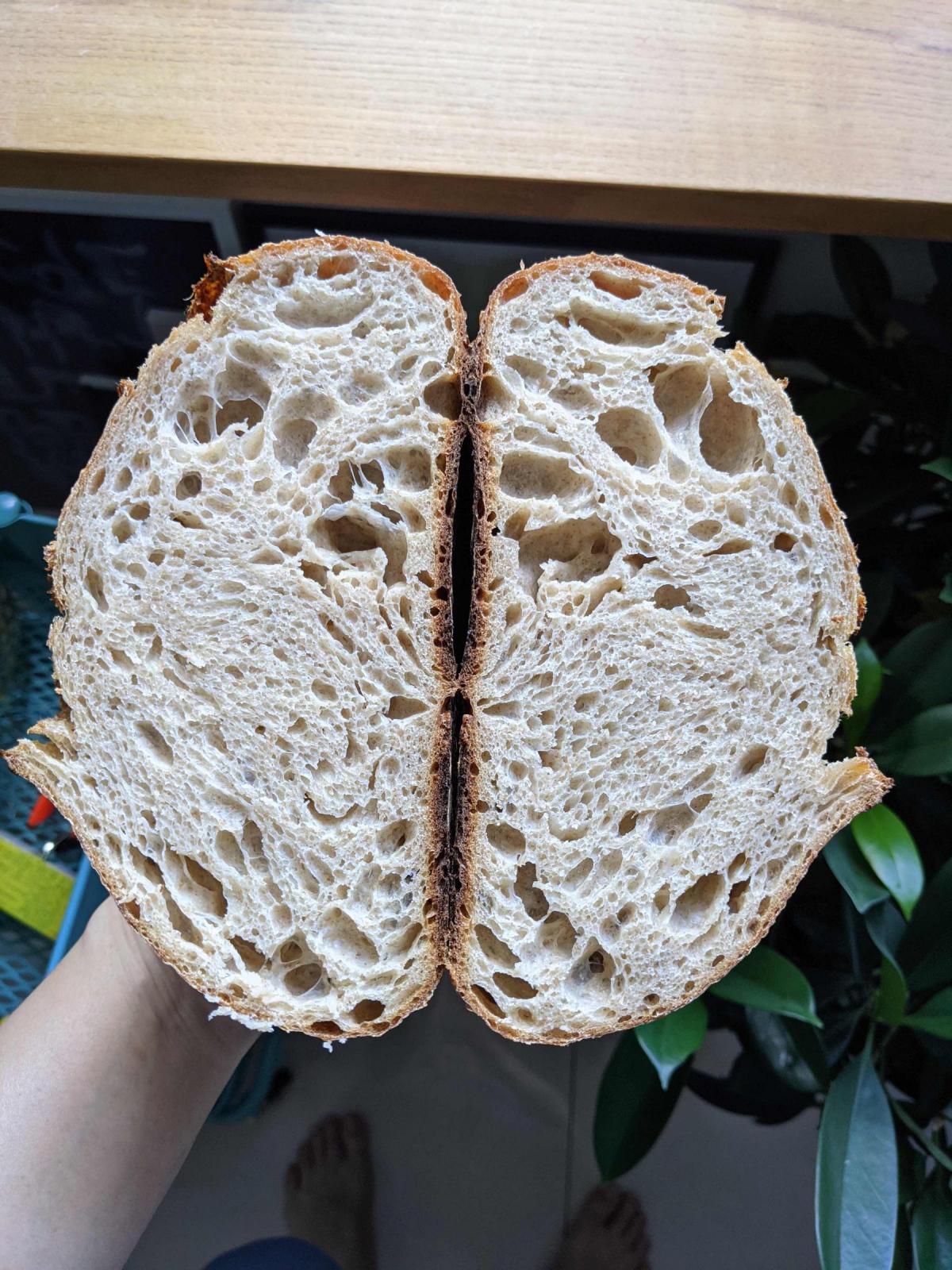 I'm hoping to achieve a crumb somewhat between the hole-y and dense part in the middle.