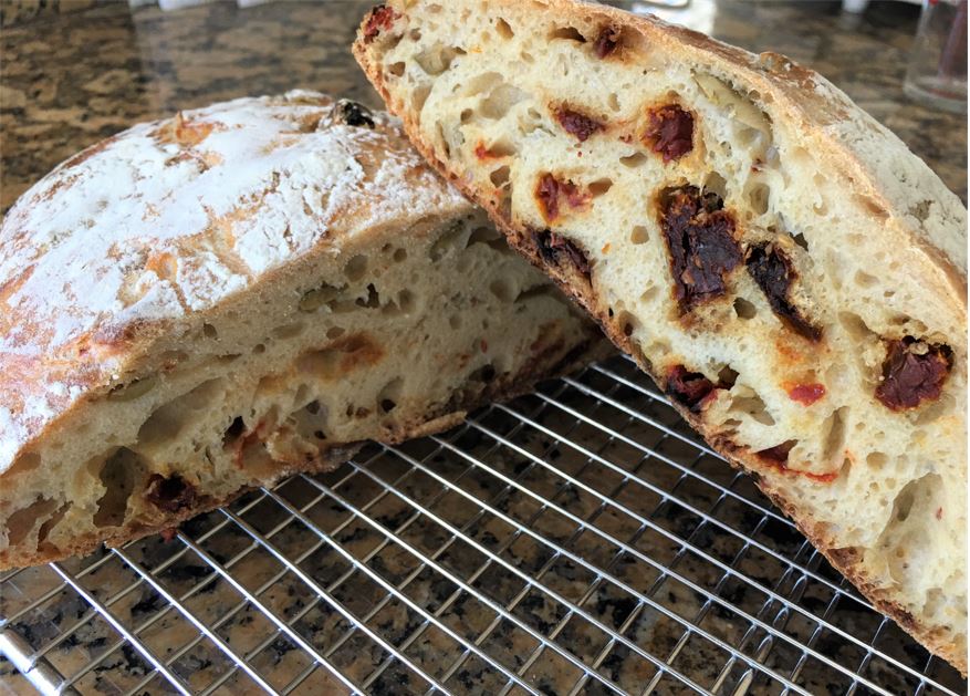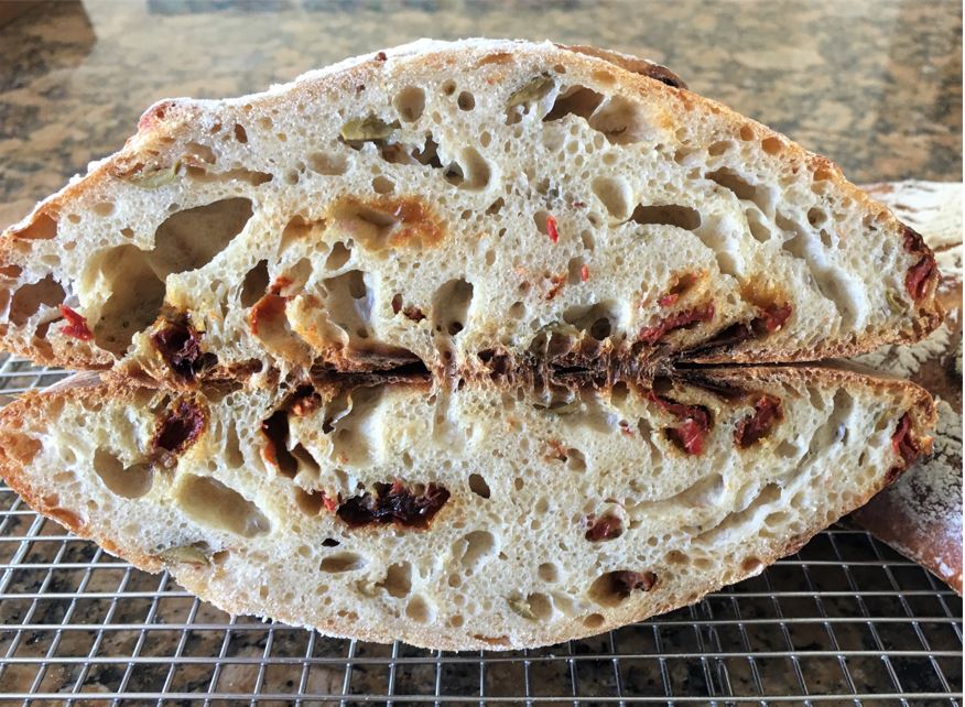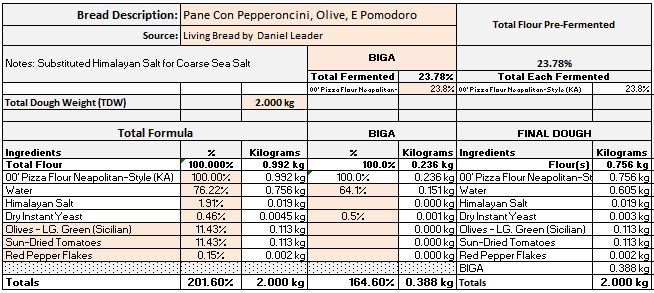 This latest bake is Pane Con Pepperoncini, Olive, E Pomodoro from Living Bread by  Daniel Leader.