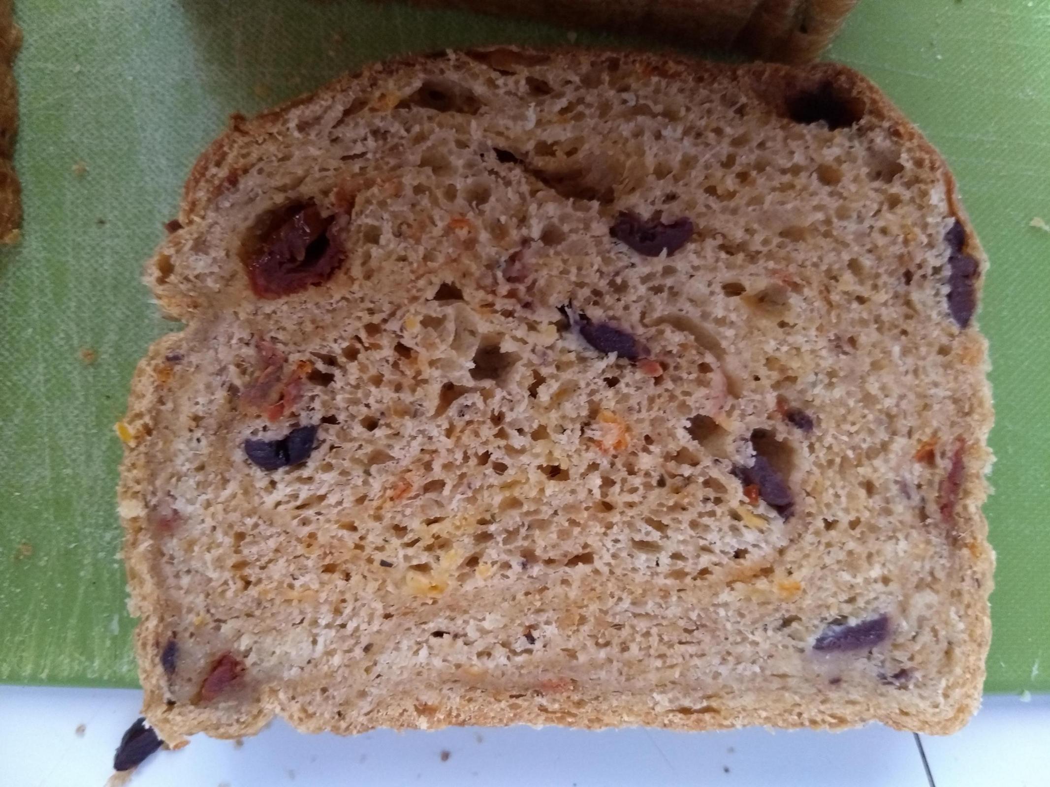 I'm happy with this loaf overall. The olives and sun-dried tomatoes add a lovely umami. There is some gumminess near the bottom of the loaf. Any thoughts on how I can improve the crumb?