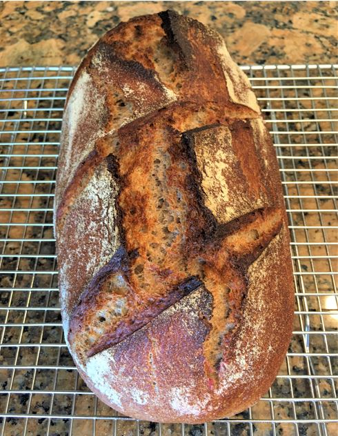 I baked two loaves the other day of this delicious bread.  I have to say that I'm quite happy with the way they turned out. The crumb is mildly dense and has a nice, light tangy flavor. The crust is crisp and has toasty/roasted flavors. This bread will definitely go into the rotation. Recipe and process are below for those interested.