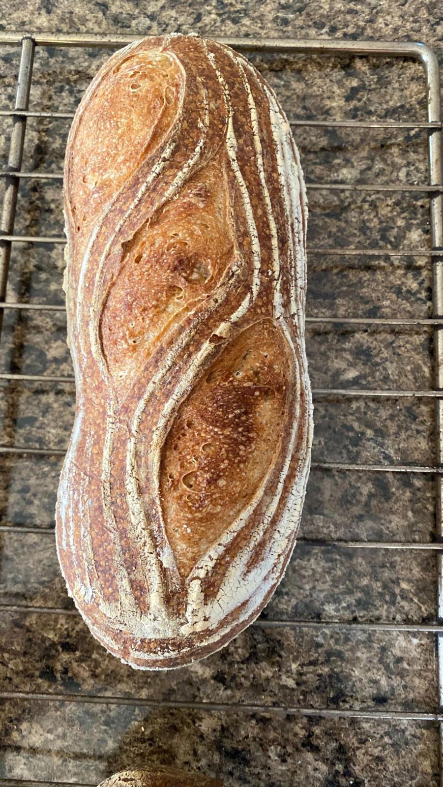 I'm very much inspired by Pollen Bakery in Manchester, and this is a photo of one of their loaves: https://imgur.com/gallery/Tr9VW26