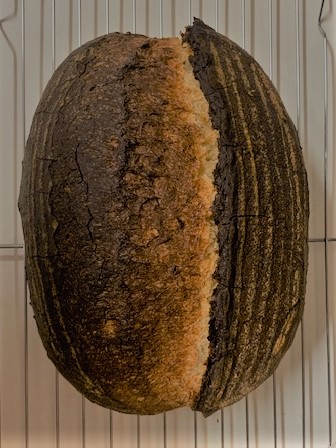 Verdict on the loaf – oven spring of 80mm, crust ear a bit charred (not unusual and adds to the flavour!), the base slightly light in colour (but not under-baked), and a nice crumb, so overall a very satisfactory bake, and ditto verdict for the Taurus, a very satisfactory purchase.