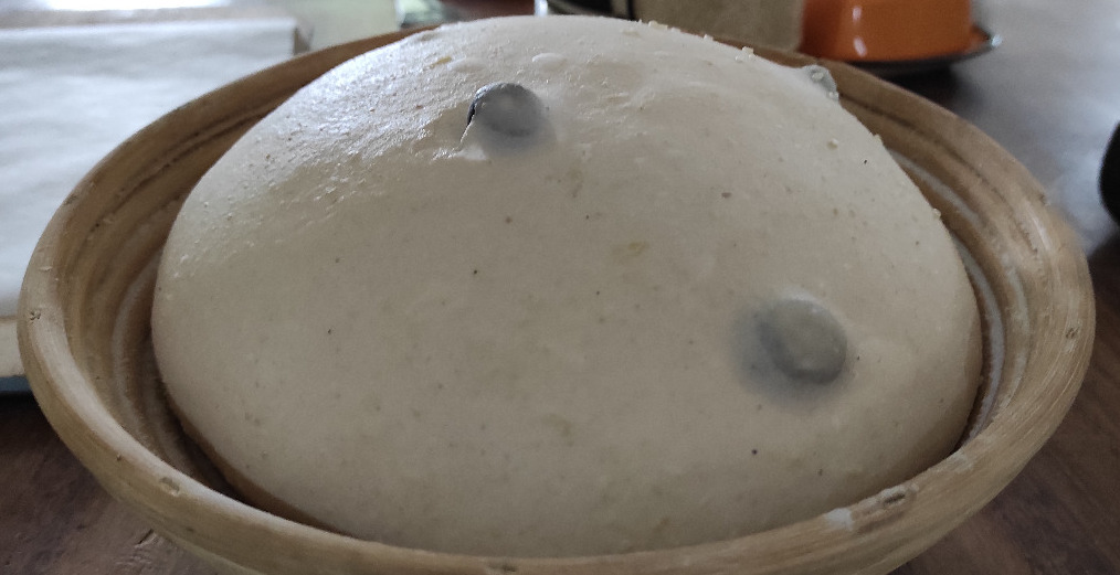 Fermentation times were similar or faster than the fast times I've seen before with yeast water: 1h30 bulk followed by 1h10 final proof, all done in the proofer at 27°C (80°F). The aliquot was estimated at 50% at the time of shaping and reached up to 225% at the end.