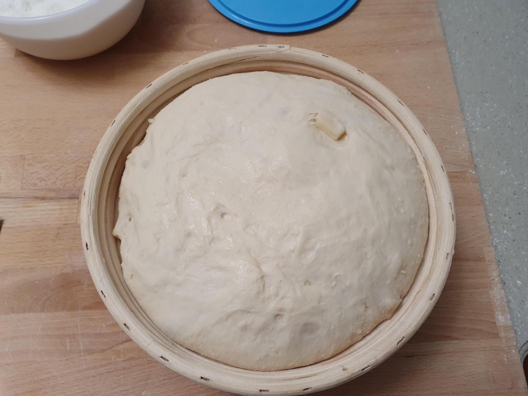 The dough, which includes both yeast and levain, was quite active, rising at least 80% or so by the end of bulk. It expanded quite a lot while proofing too.