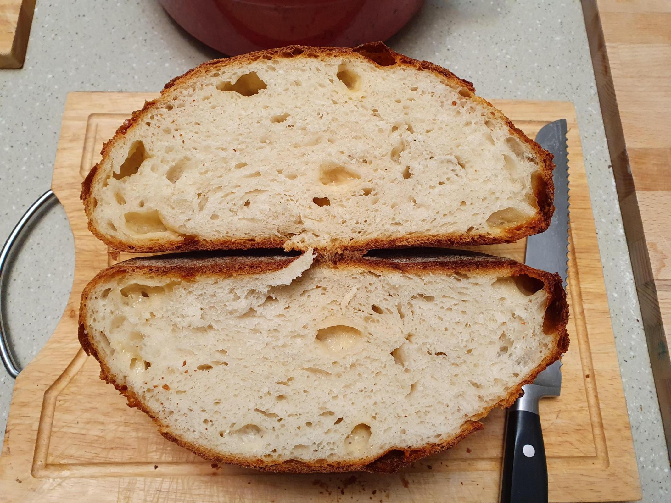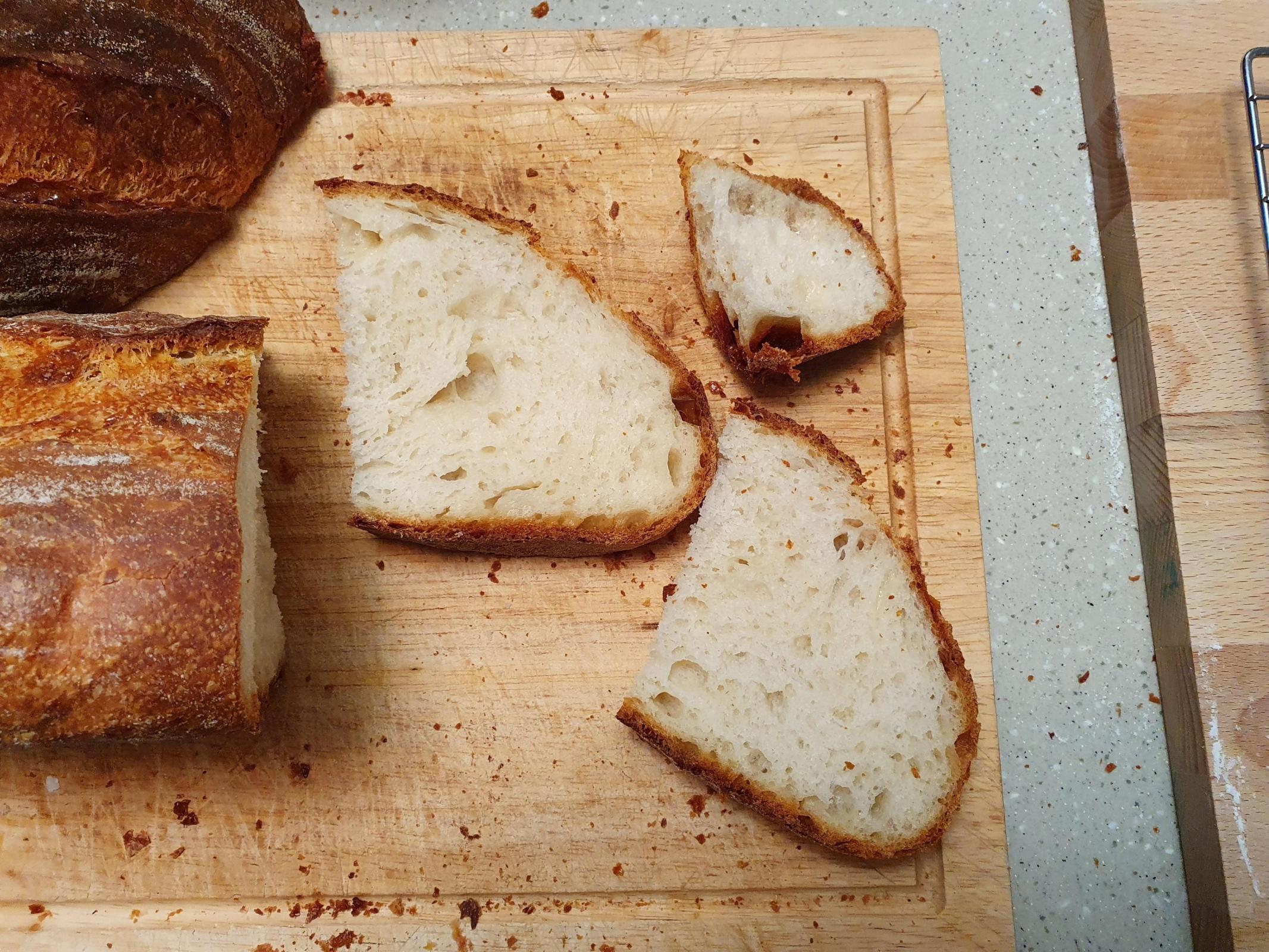 Just a really pleasant flavour that permeates the loaf, along with a very light, soft, fluffy crumb. Sourdough flavour was very mild, if any.