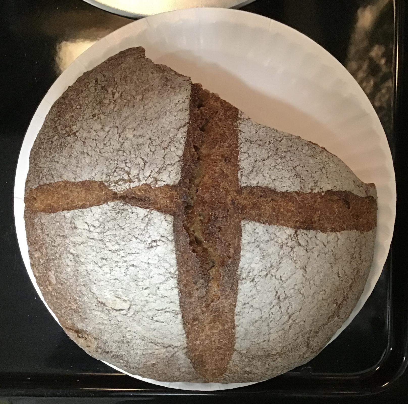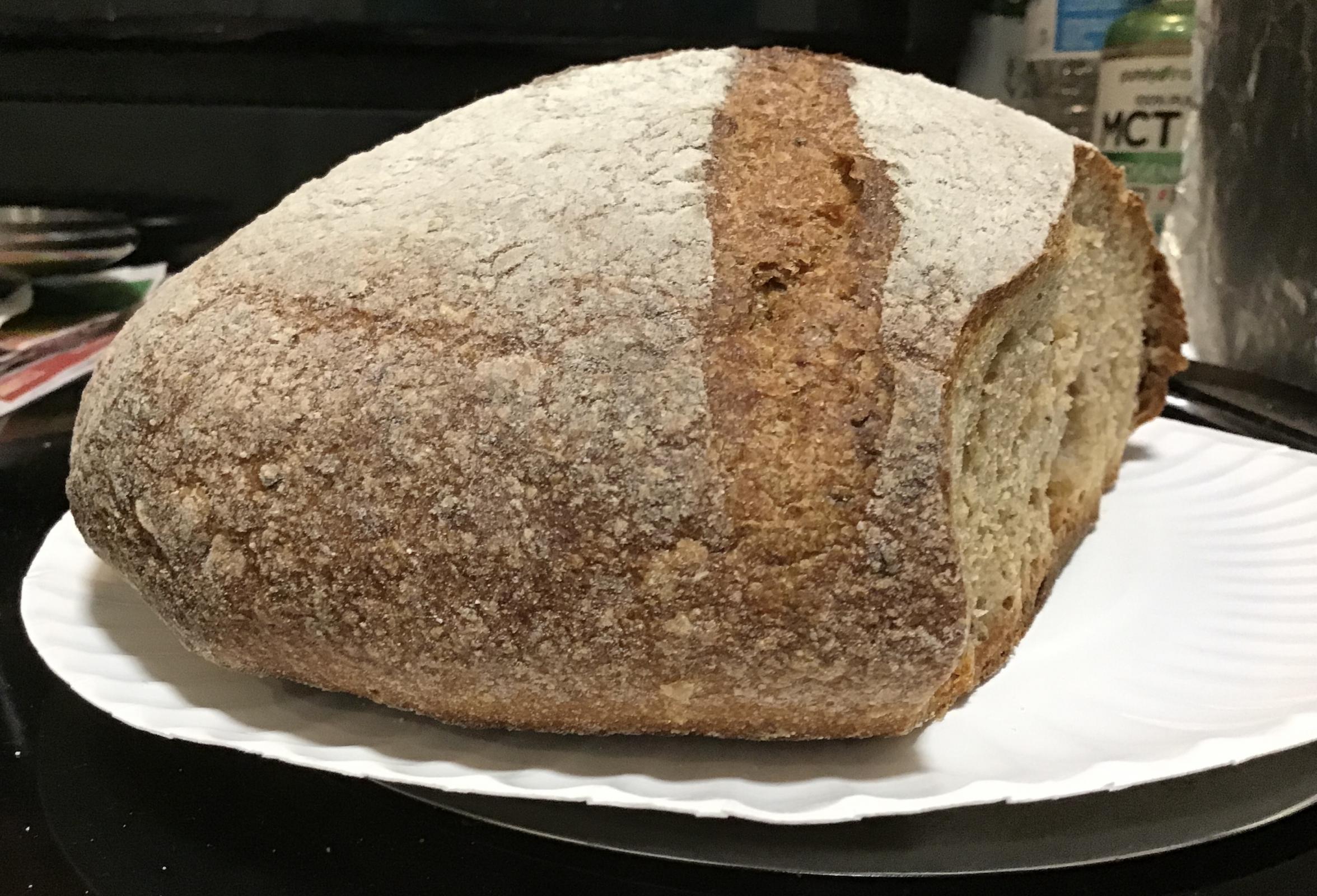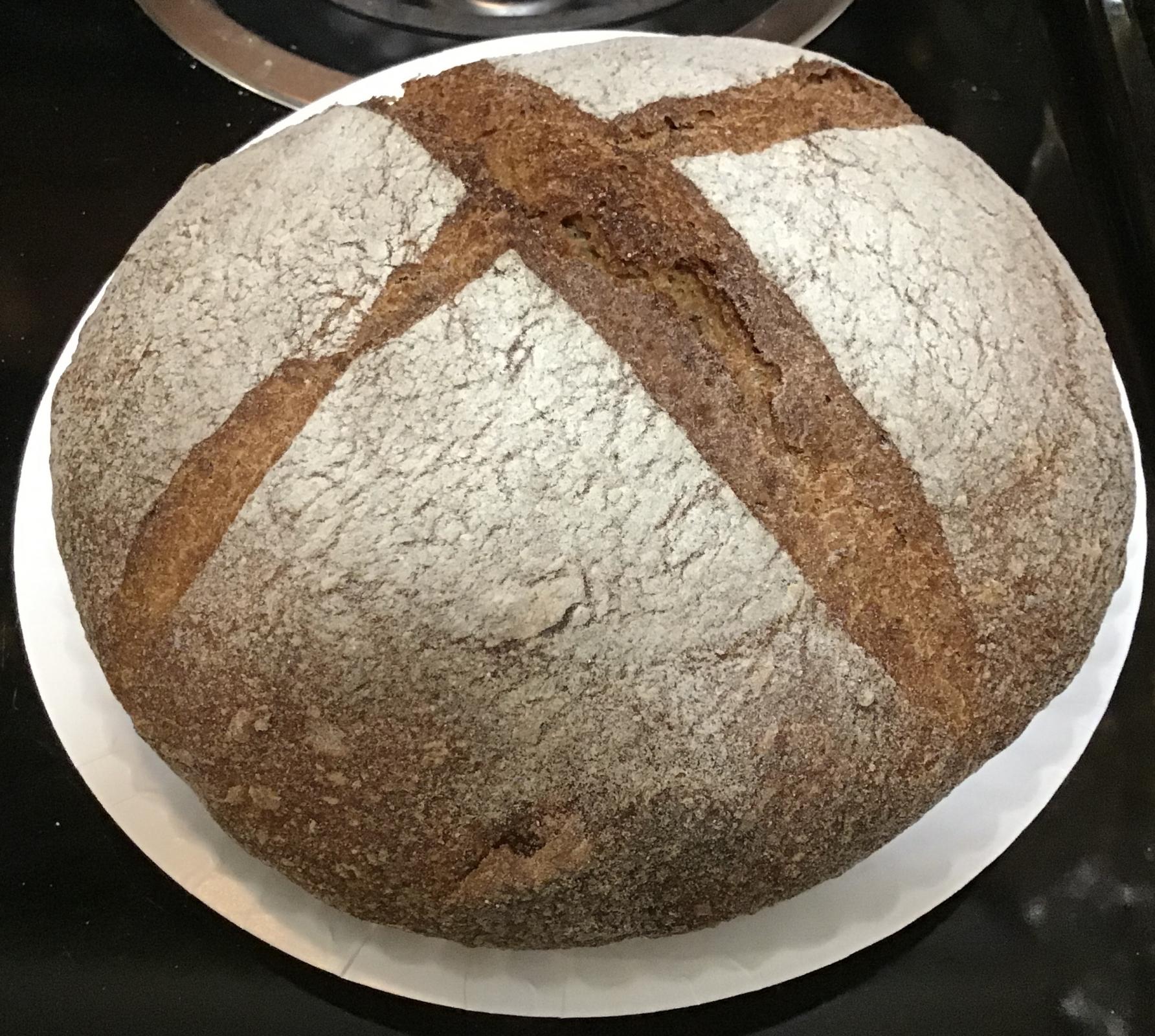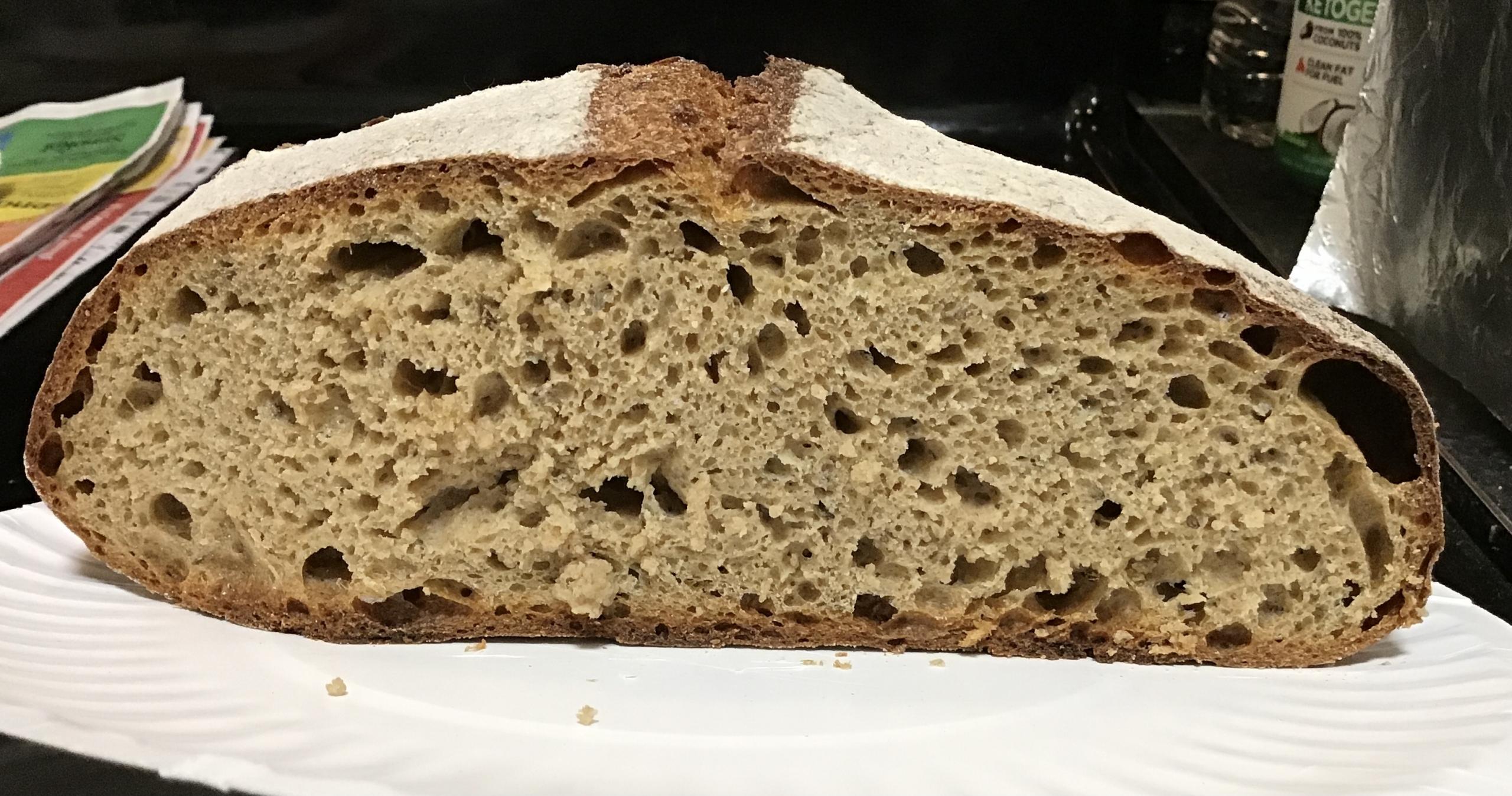 Tweaks: Full 2% salt this time. No milk. 1 hr autolyse with salt. All sourdough this time, 41 grams, no commercial yeast. 1 tsp of ground-toasted bread spice*, plus another 1/2 tsp of whole caraway. 10 grams whole chia seed pre-soaked in 40 grams water.