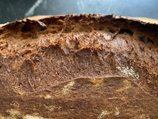 Tree bark ,I like that. I usually let loaves do their thing but scored these and it was too tentative. Picture is also weirdly represented here. Dough was very soft. Somebody on TFL froze ? Their loaves after rising / before scoring. I will purposely leave a lightly sealed seam next batch . I’m all about natural if at all possible.