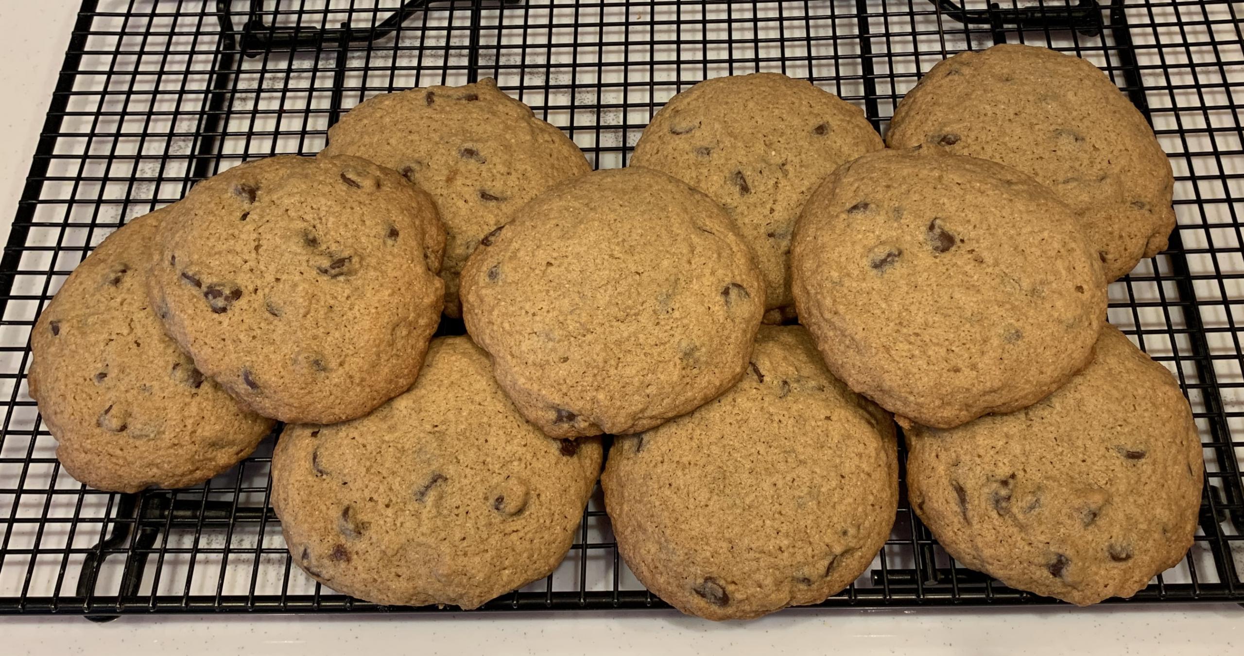 Refreshed my starter this weekend and didn’t want to waste the discard. Followed the recipe in Sourdough Cookbook for Beginners from Breadtopia. I like this recipe. The sourdough and the whole grain seem to take the edge off the sweetness of a chocolate chip cookie and they are not greasy at all.