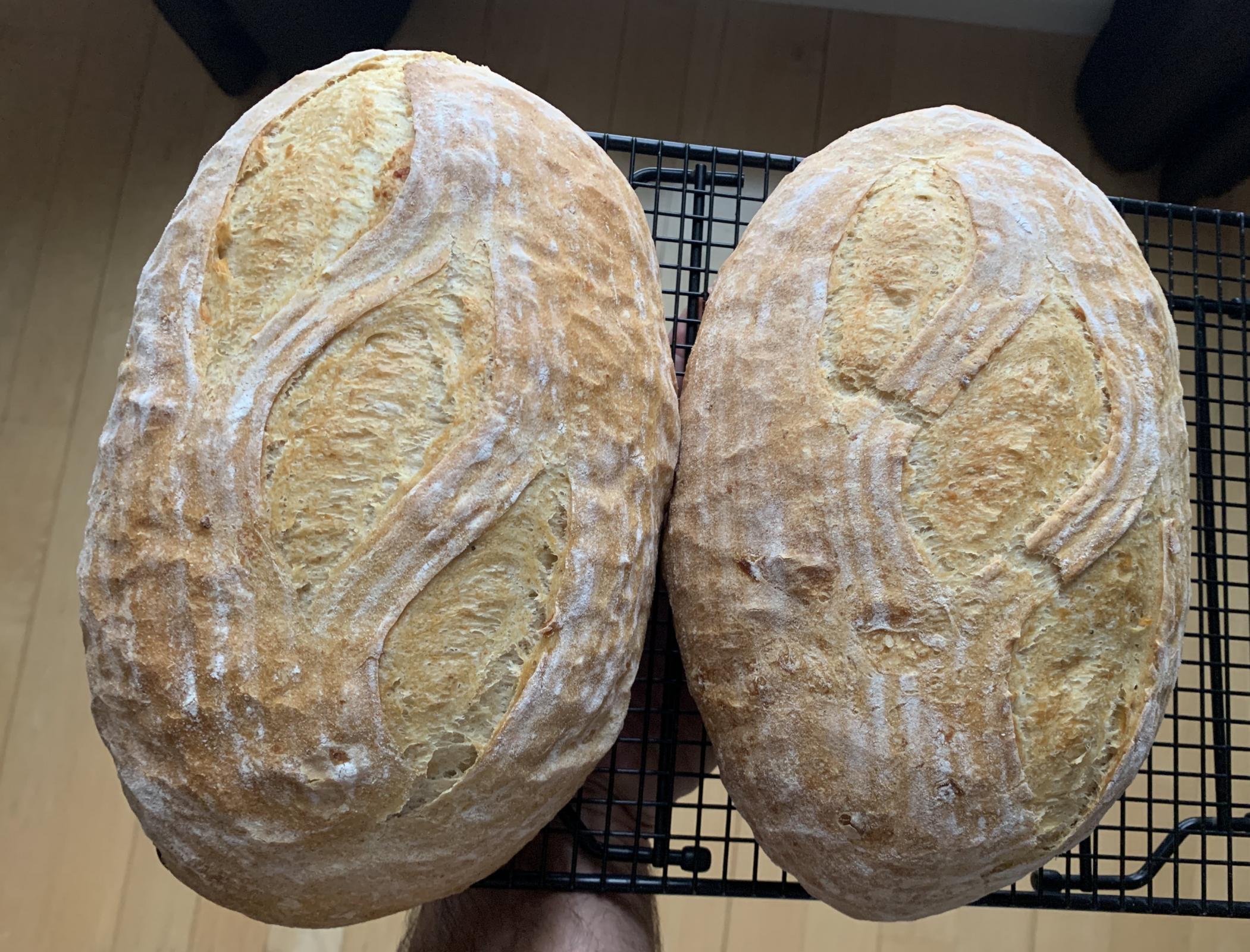 The basis for this bake is Hamelman’s Roasted Potato Bread from Bread (2nd Ed.). This is my second time making it with two tweaks that I thought were minor (but turned out to be a big difference) and also baked at a lower temp this time. I followed the recipe verbatim the first time I made it and used Mr. Hamelman’s suggestion of oven roasting the potatoes. The bread turned out very good.