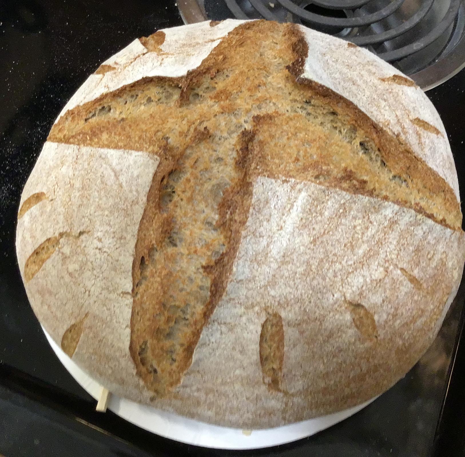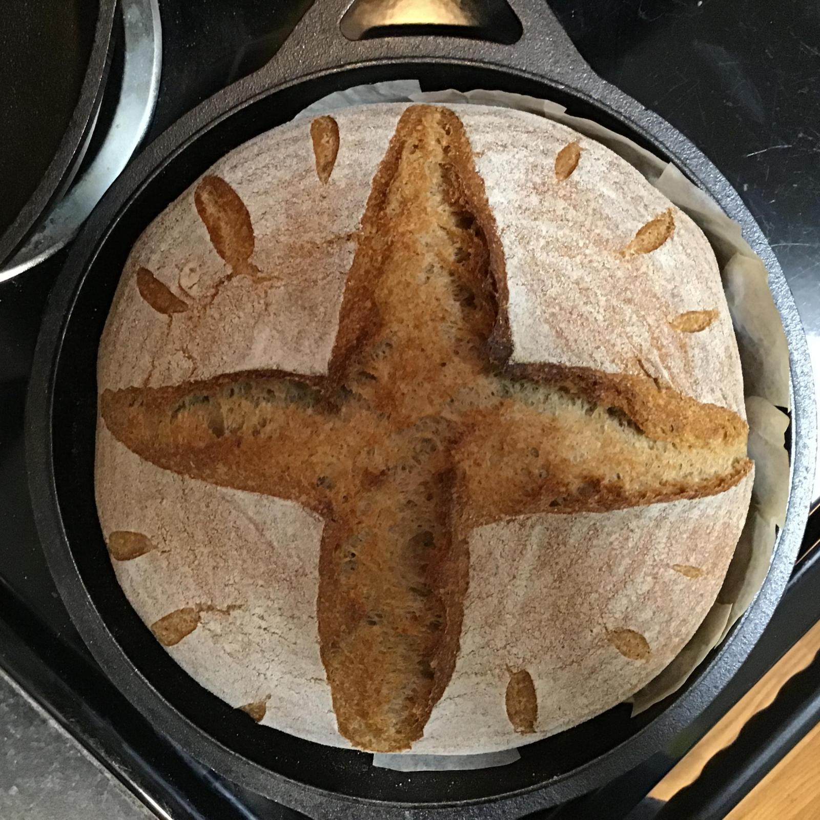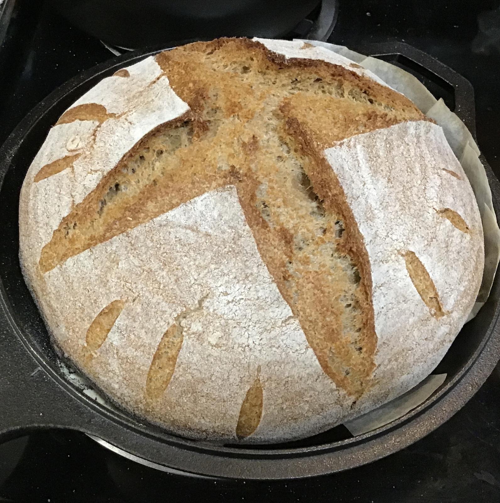 The goal is to make at least 1300 g of dough, of approx 90% whole grain. 1300 to 1350 of WW dough fits nicely in the lid portion of my Lodge 3.2 qt combo cooker.
