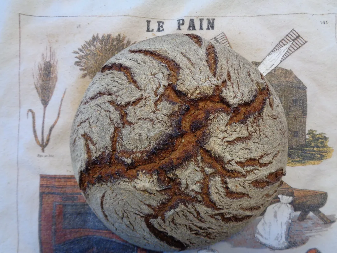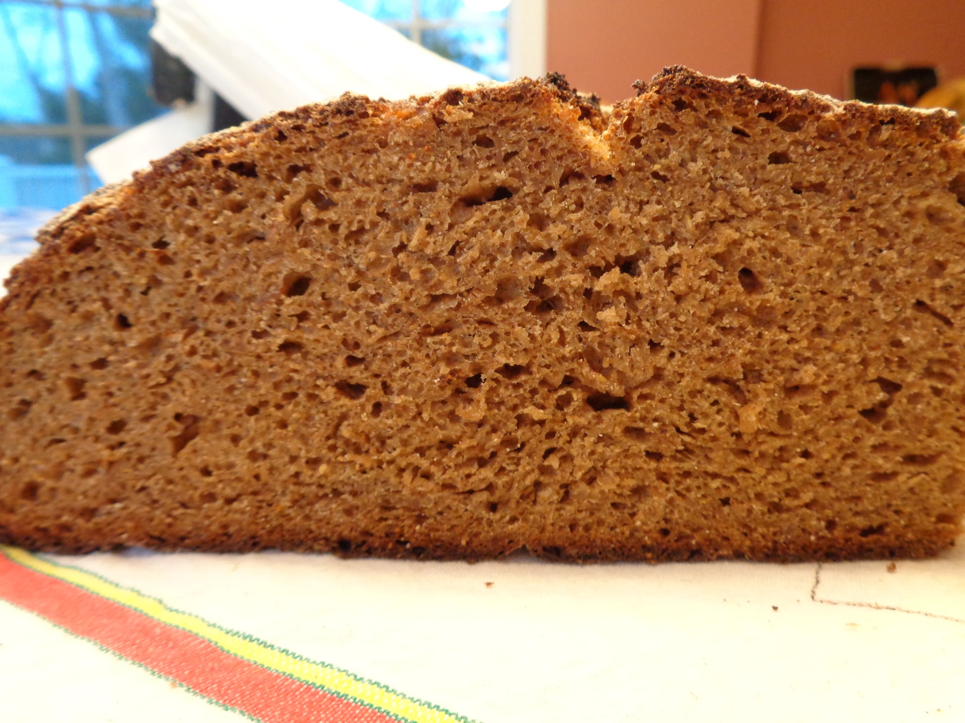 50/50 rye and wholewheat with a saccharinified scald of gelatinized rye chops. The basic recipe is here:https://www.wildyeastblog.com/finnish-rye/ and in Glezer's Dutch Regale's Finnish Rye with the following modifications: