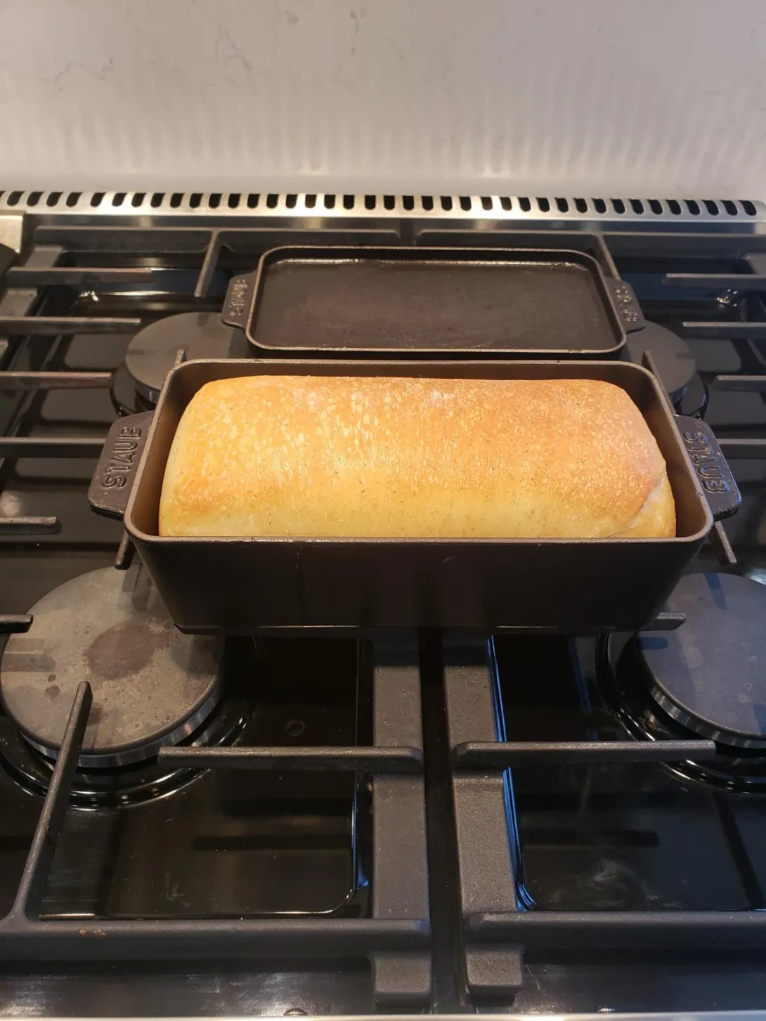 So, I got this gorgeous new pan but was at a bit of a loss as to what to do as I had no recipe for it. I found this recipe here https://myloveofbaking.com/sourdough-sandwich-bread-pullman/ and it looks and tastes great!