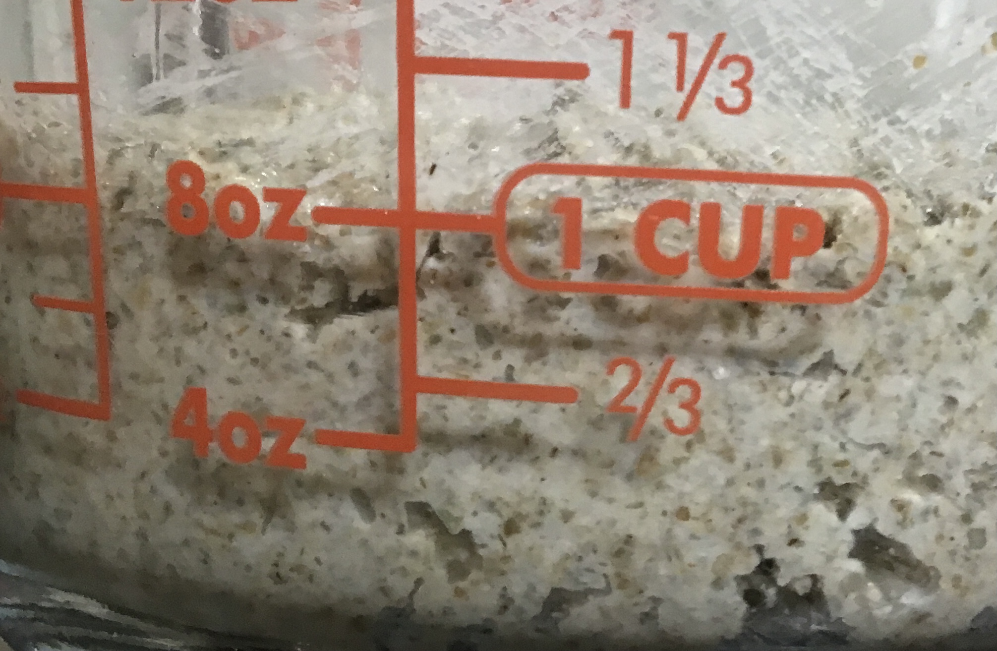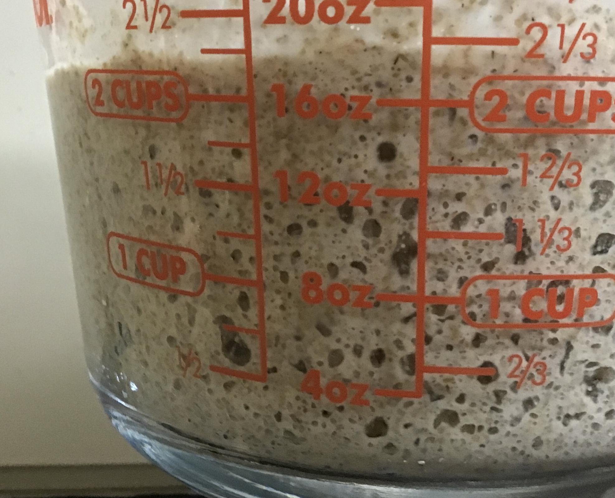 Cold pre-preferment, it shrunk from 2.5 cups to 2 cups while in fridge: