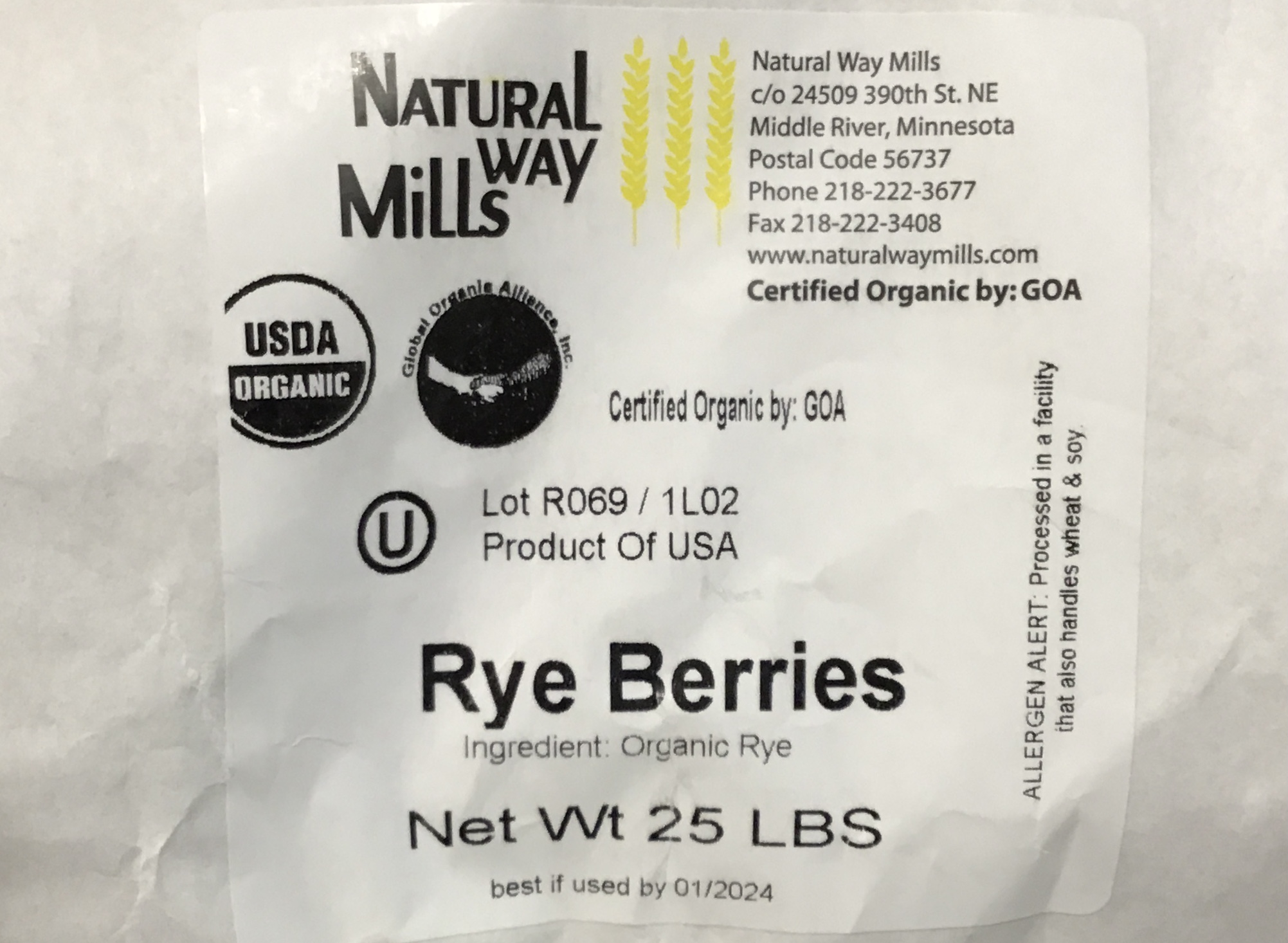 I took delivery of 25 pounds of rye berries in early Jan.