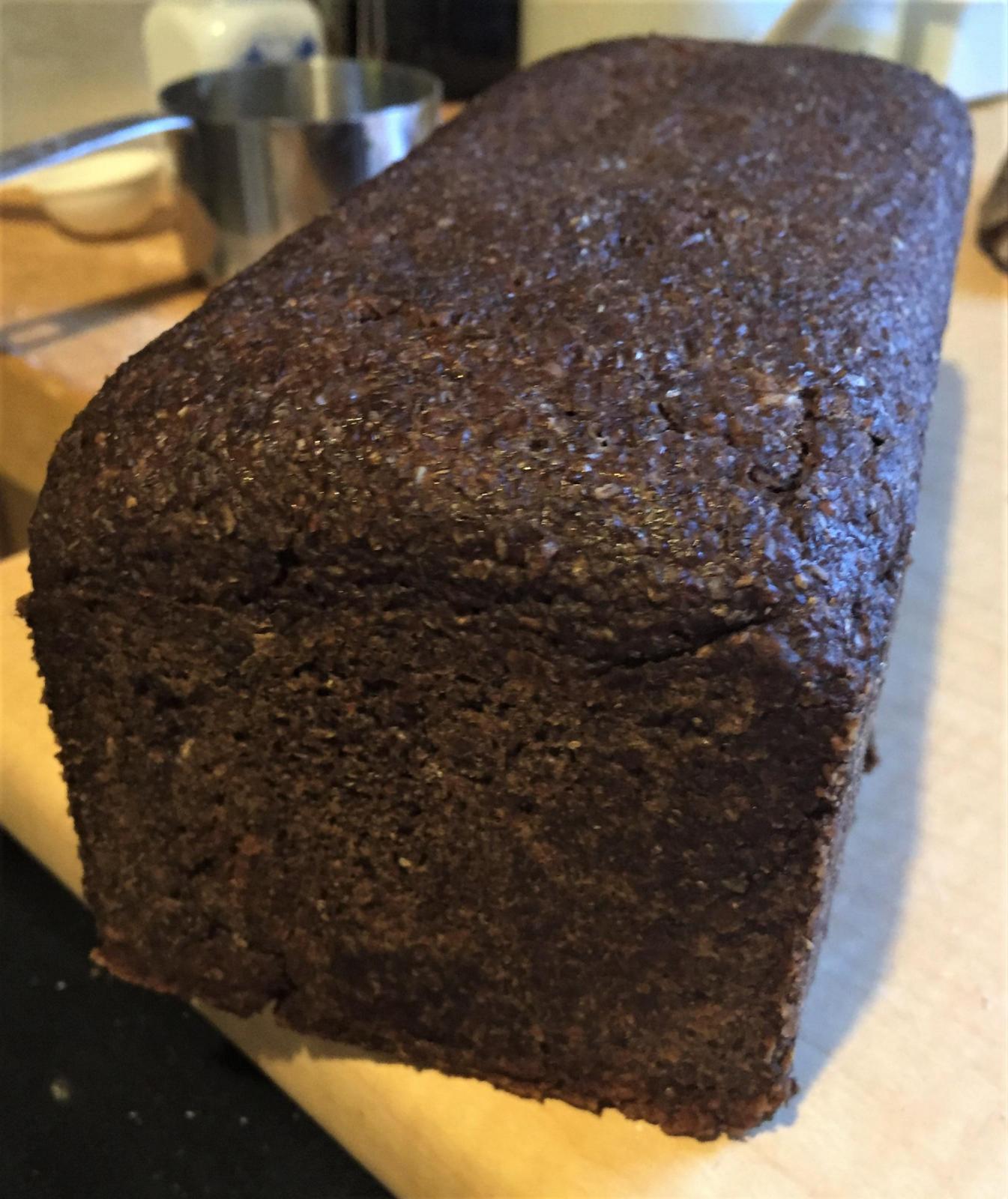 This is the secret to Westphalian Pumpernickel (I believe). This long low temperature bake brings out the flavour. It's not a soft bread, meant to be a dense rye full of caramel flavours. Cut thinly and enjoy.