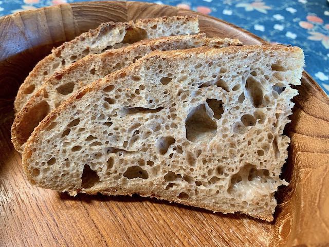 I had no fresh wheat & used King Arthur instead. I wouldn't mind getting more vertical rise (I prob need to do a few more folds to build structure ... or cut the hydration a tad), but the taste is revelatory.
