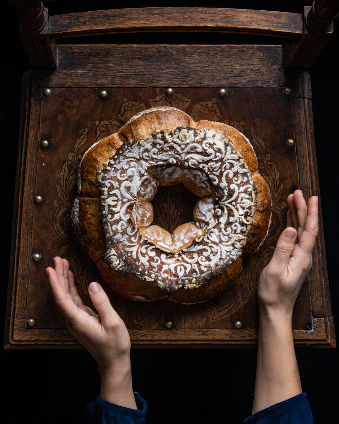 The Lyon crown has also a rustic version that does not involve any balls: the entire dough is shaped in a boule and with the help of the elbow, a hole in the middle is created and placed in the basket with the bump or simply proofed on the board.