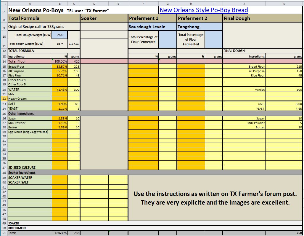 TX Farmer did it again - New Orleans Style Po-Boys. I live 38 miles southeast of New Orleans and have been baking bread for years. Not until this formula have I been able to produce a great New Orleans Po-Boy bread. We call them "French Breads". It seems the rice flour may have been the missing ingredient.