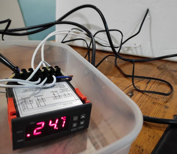 I should have poked the hole for my temperature probe lower down and closer to the heating mat.