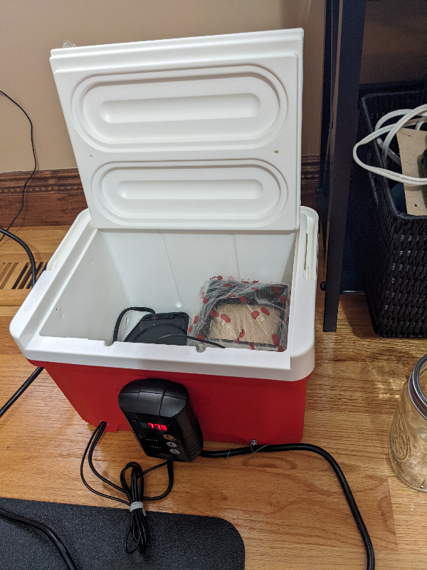 Just wanted to show off the inexpensive fermentation chamber for sourdough starters I made. It has gone through a few upgrades, but this is the final version (probably).