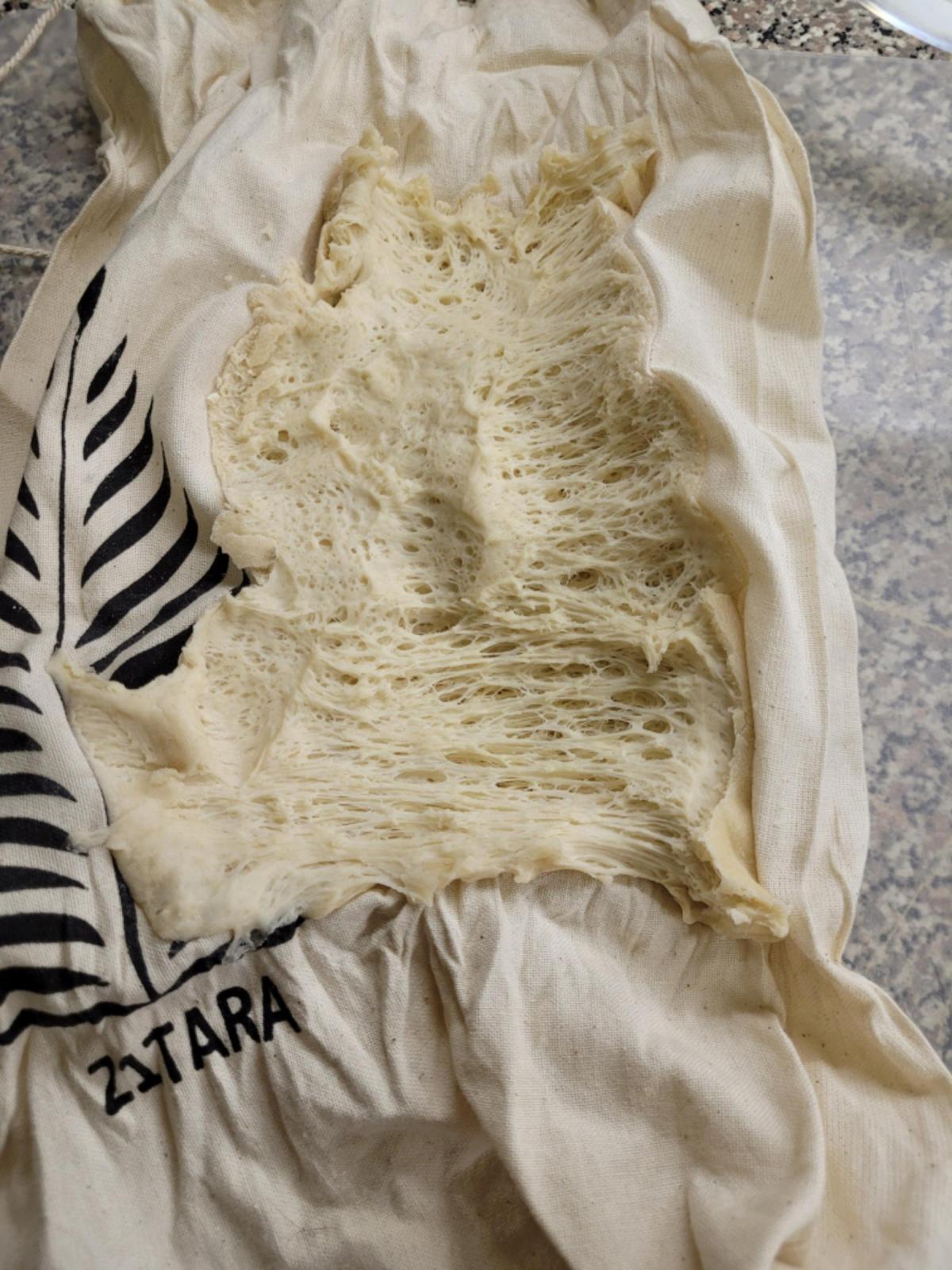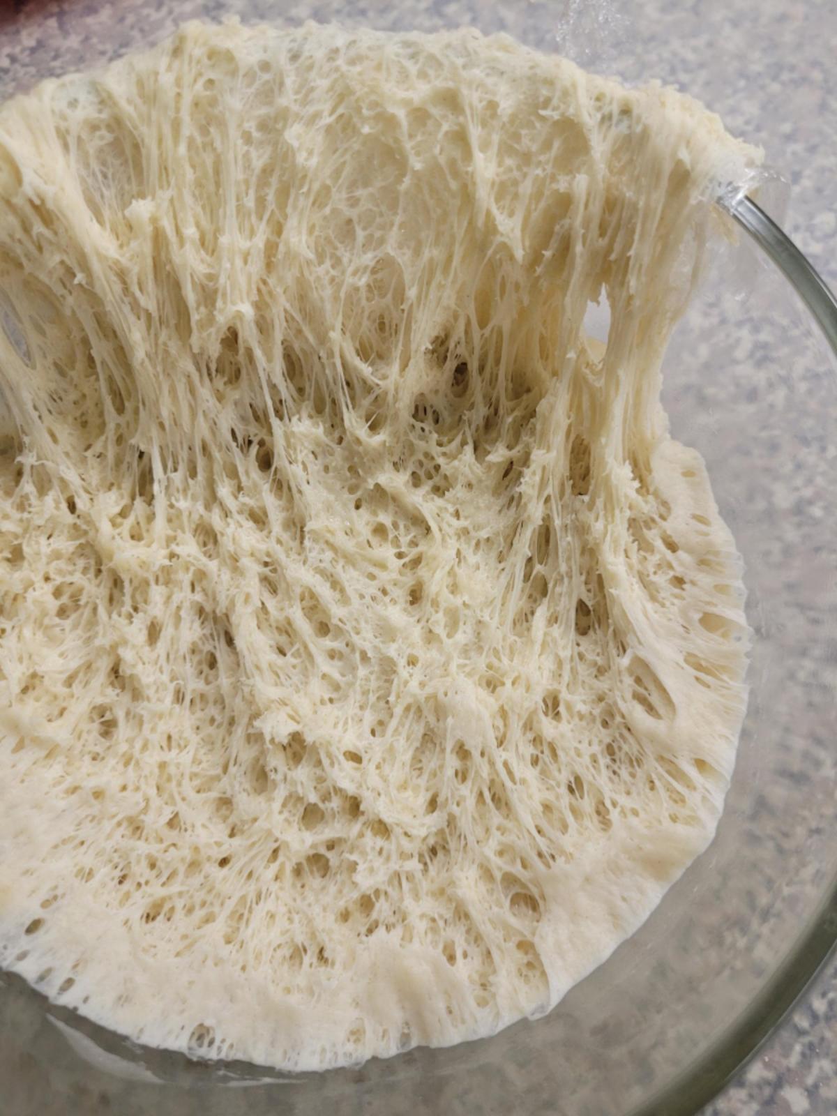 Valentina Bria (the mother yeast, daughter of Slow-Mo) is looking all fine with her intricate gluten structure. All is as it should be. refresh #5 in four hours at 3 A.M E.S.T. First dough builds at 7 A.M. E.S.T.