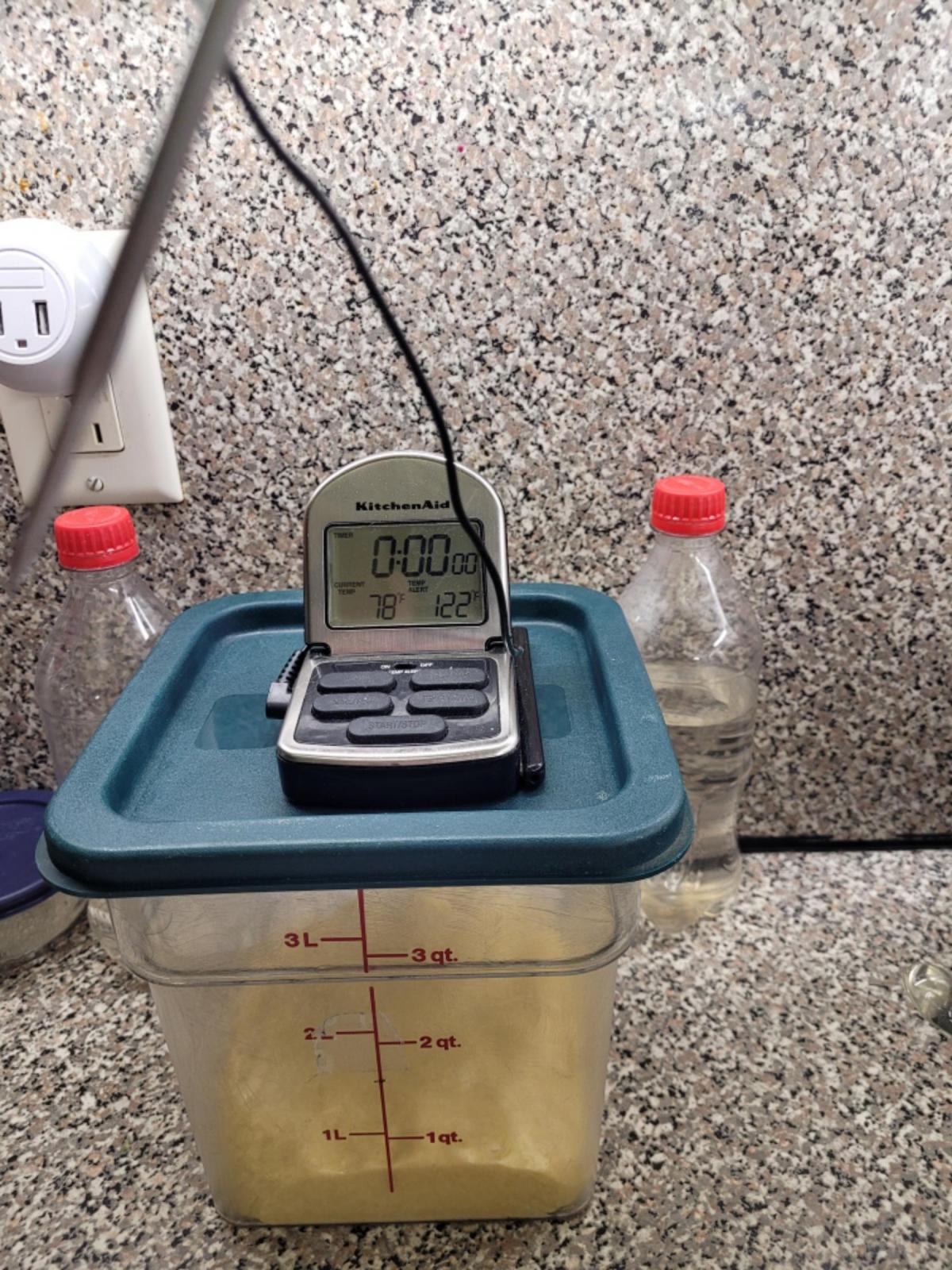 I am so embarrassed, being the cocky AHole I am, I built this up to a fever pitch. Now only to have to reveal the anticlimactic finish. The quote represents the point of failure. As soon as the dough started the second build it was over. 50 measly grams of water! That was the difference between a pat on the back and an epic award-winning panettone, or this... A huge letdown. I have been racking my brain since yesterday, as to why, why this failed! I kept coming back to the citrus paste. But in the back of my mind, I could not accept that as the failure point. Long story short, I left out 50g of water in the second build. This believes it or not makes me feel a little better. Had the issue been the formula I concocted from three others I would have felt much worse. Anyone can screw up. Building a flawed formula is unforgivable! By the way, all three of the other formulas I was working with were derived from an old-time Italian formula (recipe) that can be found in the book Pane e Roba Dolce” by the Simili Sisters. I wish I could find that cookbook in English. Photos are, the beginning of proof and where we are now 16hrs. proof.