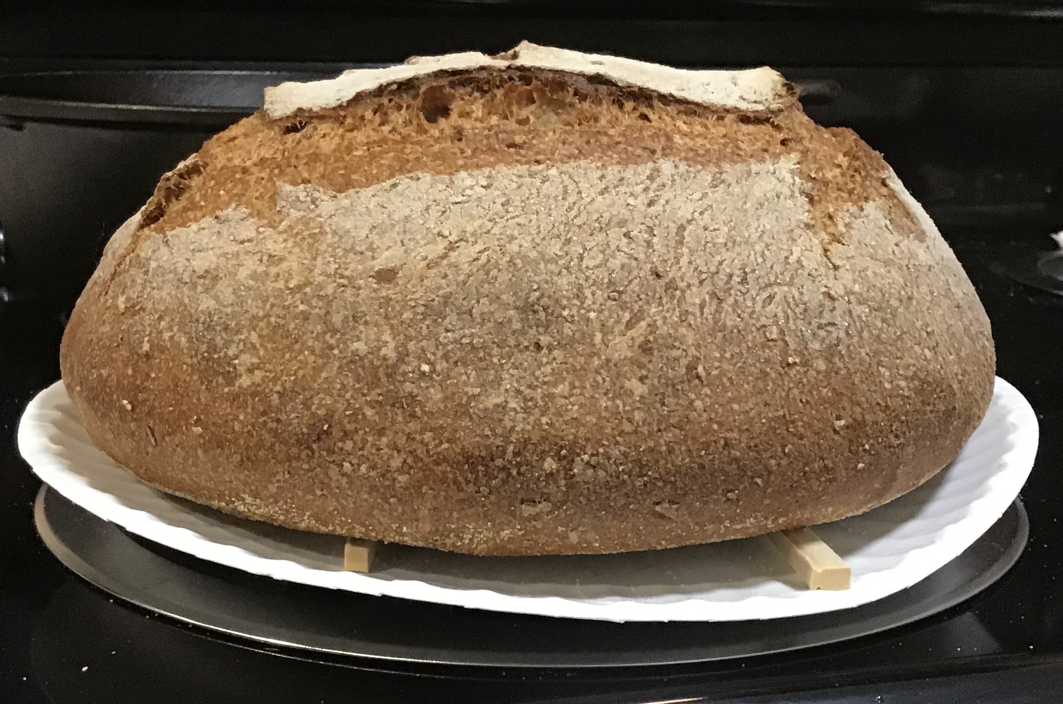 I lucked out on the oven spring, as the dough deflated a bit upon scoring. This scoring job was a bit sloppy.