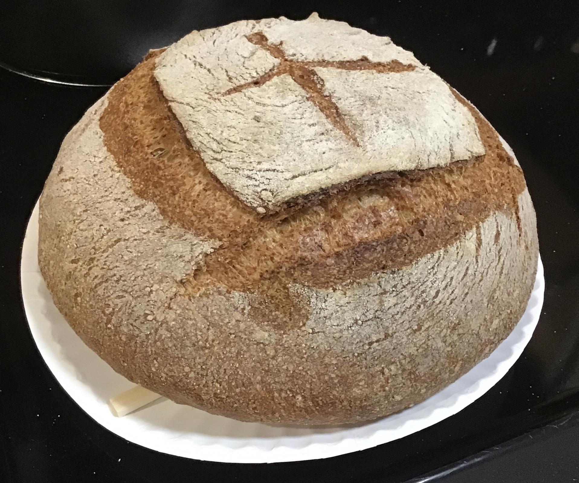 Excellent looking country bread style loaf. Which is basically throwing in a few different types of flours. Well shaped and scoring opened up nicely.