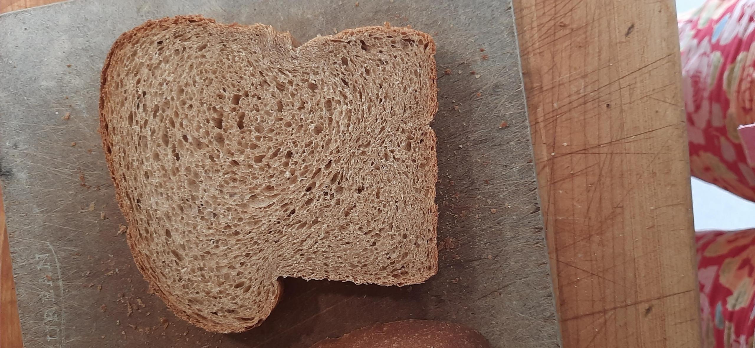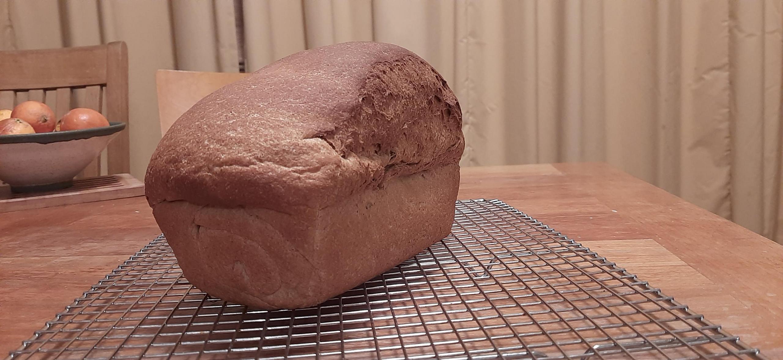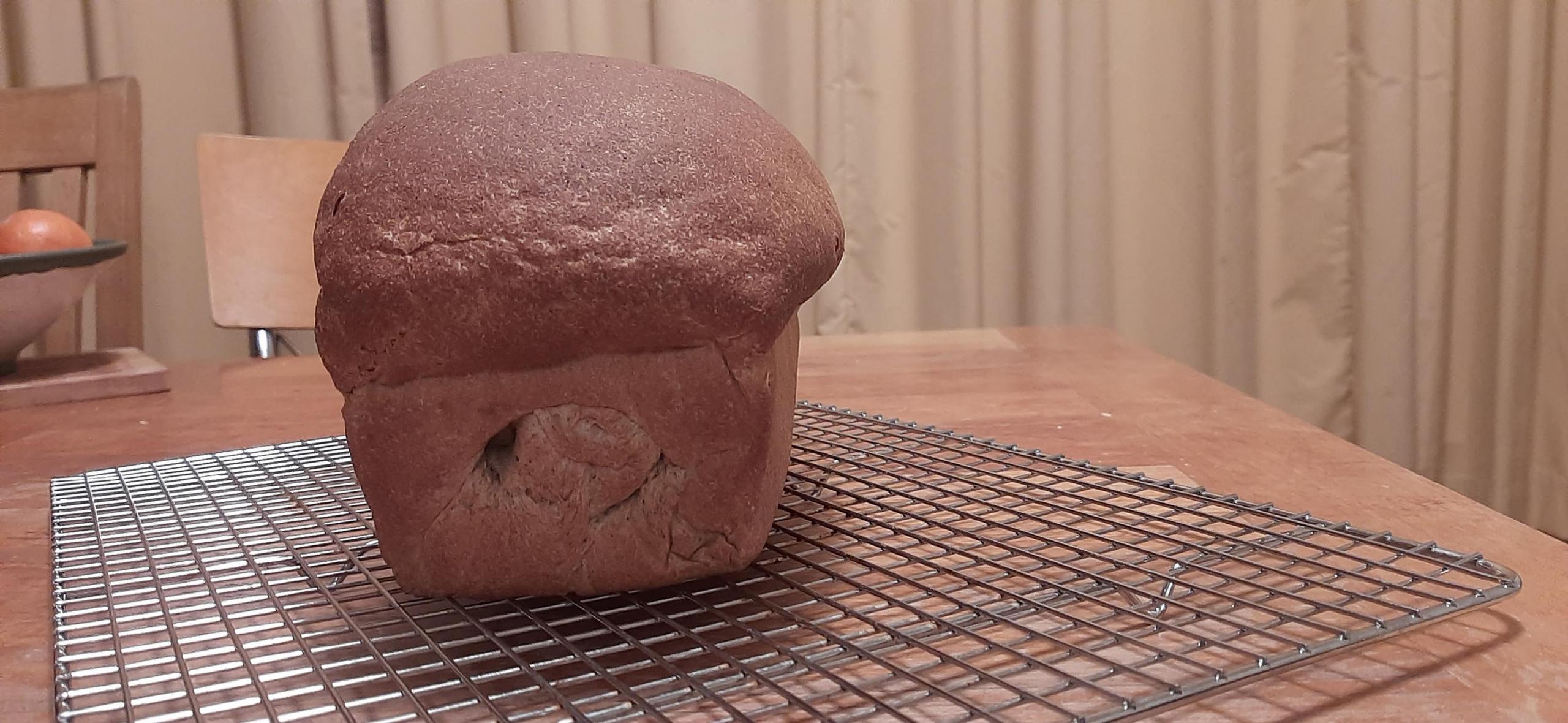My shaping skills have a ways to go. I have a tendency to over-tighten and unevenly tighten, which leads to cute lopsided loaves like this. But the crumb was velvety and moist. The flavor was a little sweet for my taste but others loved it. The scent is the crumb was a bit odd. It was sort of winey or beery. That disappeared when it was toasted. Altogether a very fun and educational loaf of bread. And the Yecora Rojo mills and kneads like a dream.