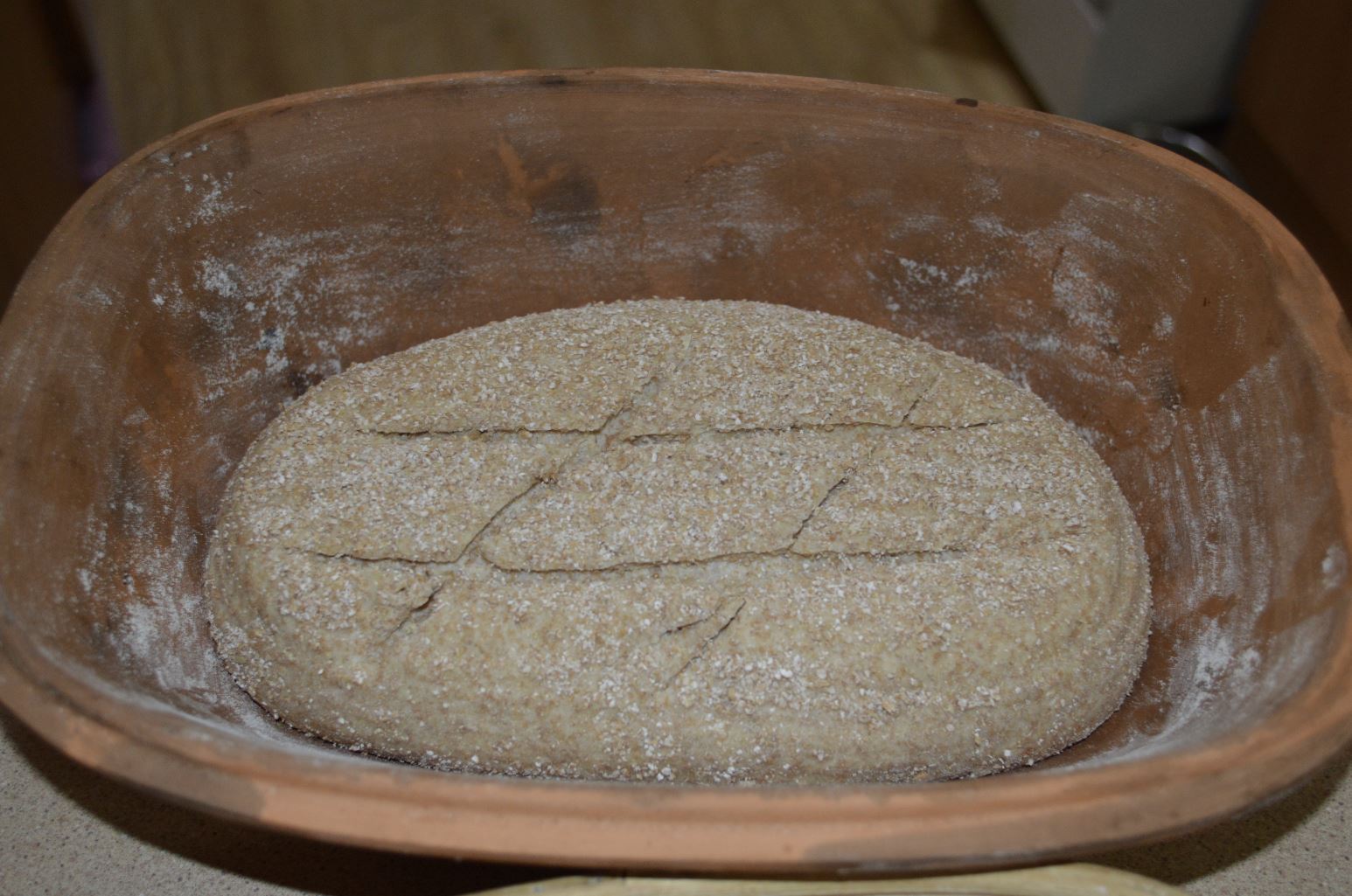 I have had another crack at the Red Wheat adjusting the yeast and also the water using part of the allocation to assist in the liquidisation of the sprouted Red Wheat. as it turned out i added 40g more water during the mix! The yeast came down to just 3g which is 0.77% of the formula and was more than adequate and the dough had a BF of 2.5 hours. i did do an Autolyse where the flour and water was brought together and then allowed to sit for 45 minutes prior to the remaining ingredients being added and the dough was mixed for 15 minutes in my Noddle dough machine. Red wheat fresh milled wholemeal flour 286g ; Millers single origin white flour 104g ; salt 8g ; Saunders liquid malt 8g ; butter 8g ; dried yeast 3g ; Red wheat sprouts liquidised 78g ; water 253g + added 40g during the mix :Bulk fermentation time 2.5 hours Bench rest 20 minutes Final proof 30minutesBaking time 15 minutes in the Romantoph lid on @ 250C 35 minutes lid off at 220C I get the impression that this dough will handle a hotter baking temperature and or a sign that the natural sugars have been consumed during fermentation. something to incorporate in my net bake of this bread. i shall take it to a small family gathering tomorrow to celebrate my 71 st birthday, hopefully get a couple of pictures of the inside then!Couldn't wait HAPPY BAKER!