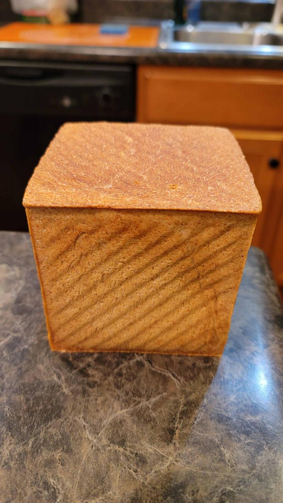 That is just perfect Ming. You had the exact amount of dough to fill that cube and get those sharp edges too. I can’t wait to see the crumb.
