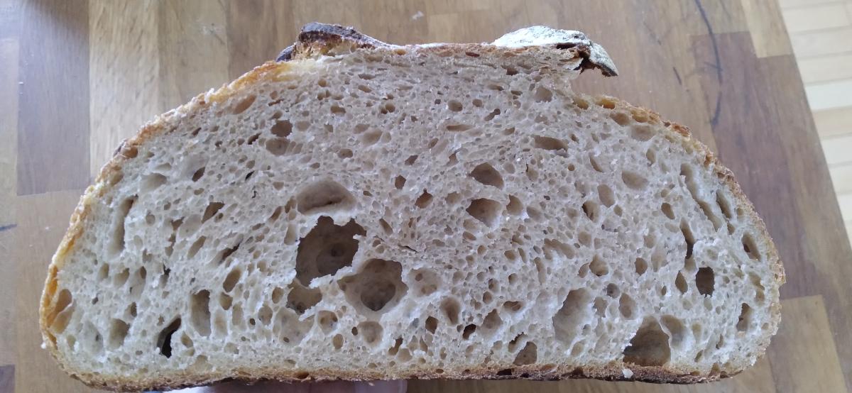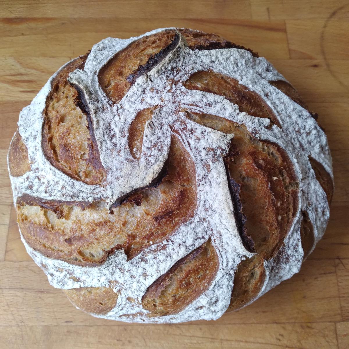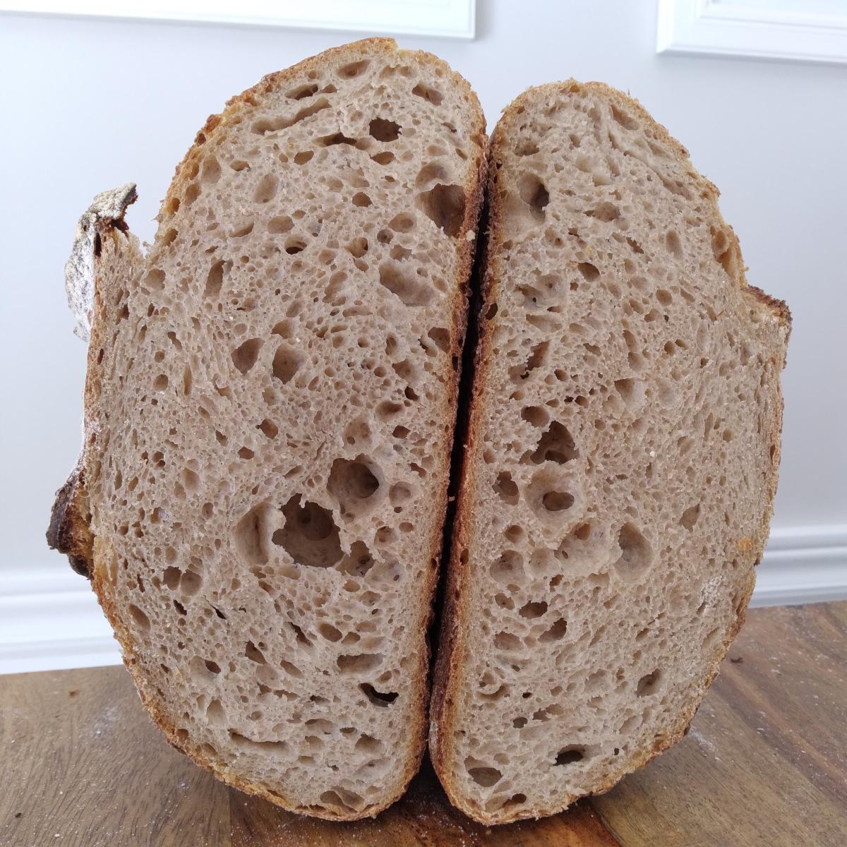 10-12% active whole spelt starter (vol double in 5h - ratio 1:1.5:1.5)