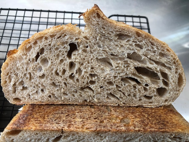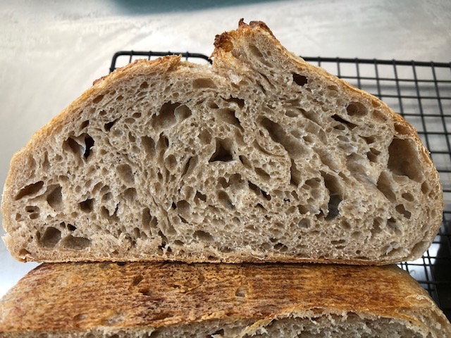 Wow you got such a great bloom and oven spring without spreading, very impressive for 40% whole Spelt.