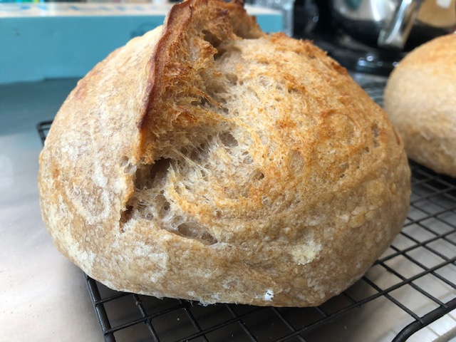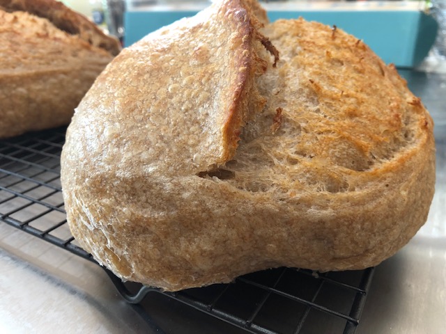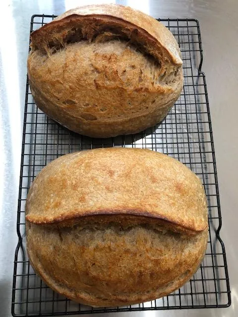 Here are 40% Spelt flour sourdough loaves from Great River Milling off Amazon. The rest is 60% KA bread flour (top loaf in picture) and Bob's Red Mill Artisan Bread Flour (bottom loaf in picture). 2g of diastatic malt added in the KA loaf, none on the Bob's.