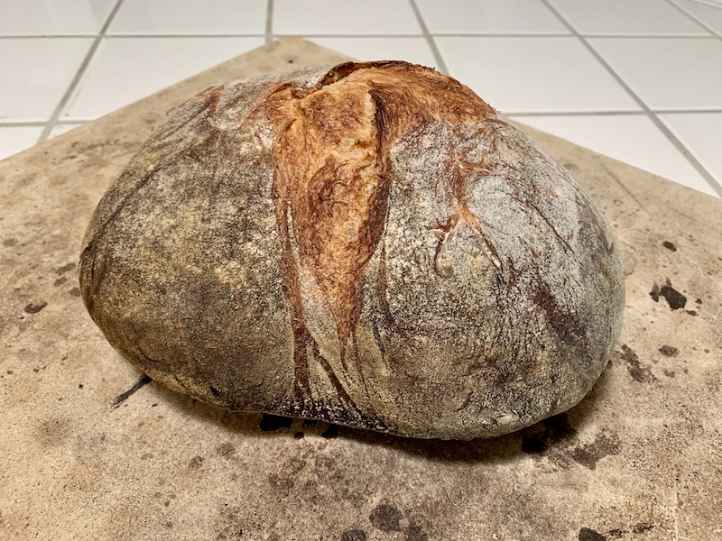 - Optionally, leave the loaf on the baking stone with oven turned off and the door ajar to dry the crust further.