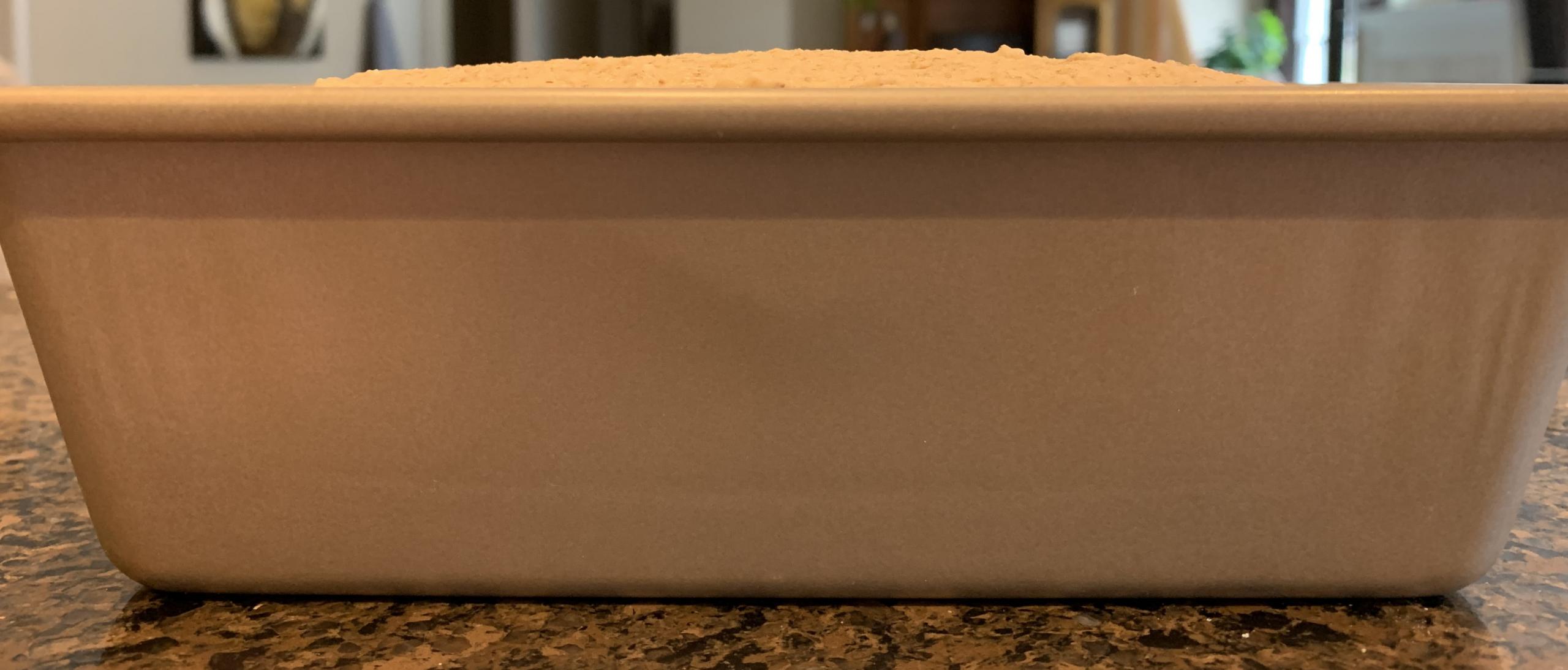 7) Pour batter into bread pan, spread evenly and smooth top with a spatula