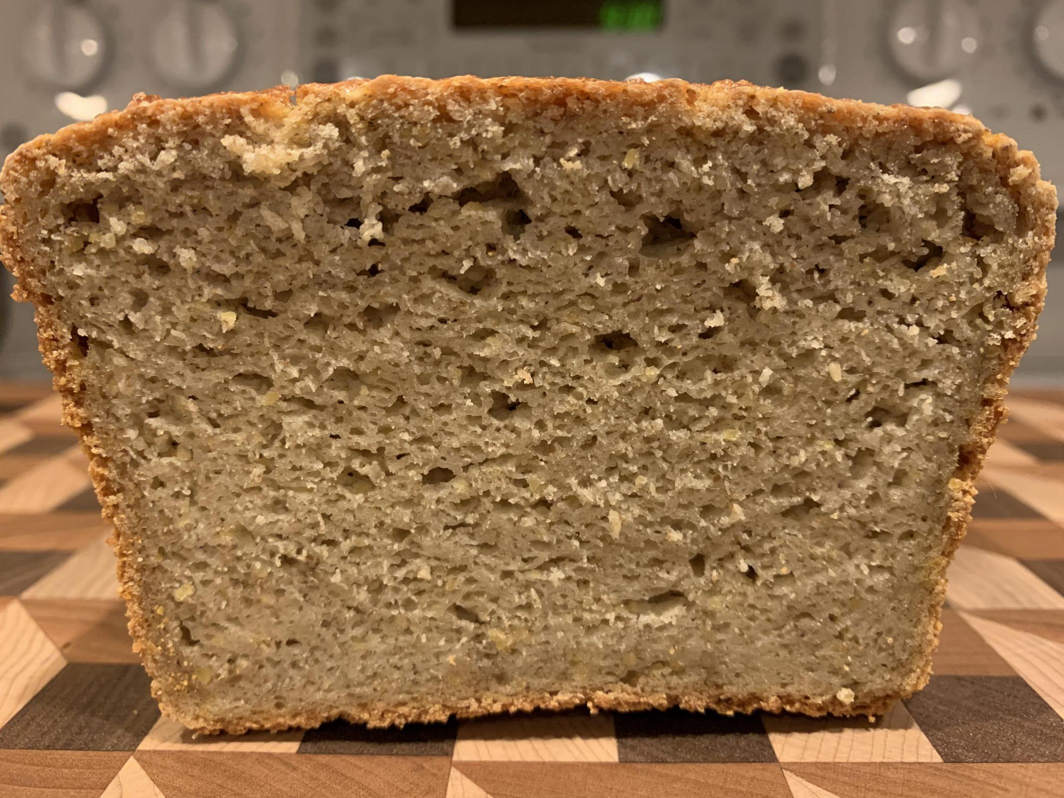 For this particular bake, I had a slice of toast with jam this morning. Flavor was a little lacking. Still good, but not exactly where I'd like it to be. Next time, I'll ferment at a lower temp to try and build a little more flavor. Most of my previous GF bakes included a pre-ferment, so I might see if I can work that into the method as well. Either that, or up the enrichments to build flavor that way. I prefer to let the flavor of the grains come out though so will start there.