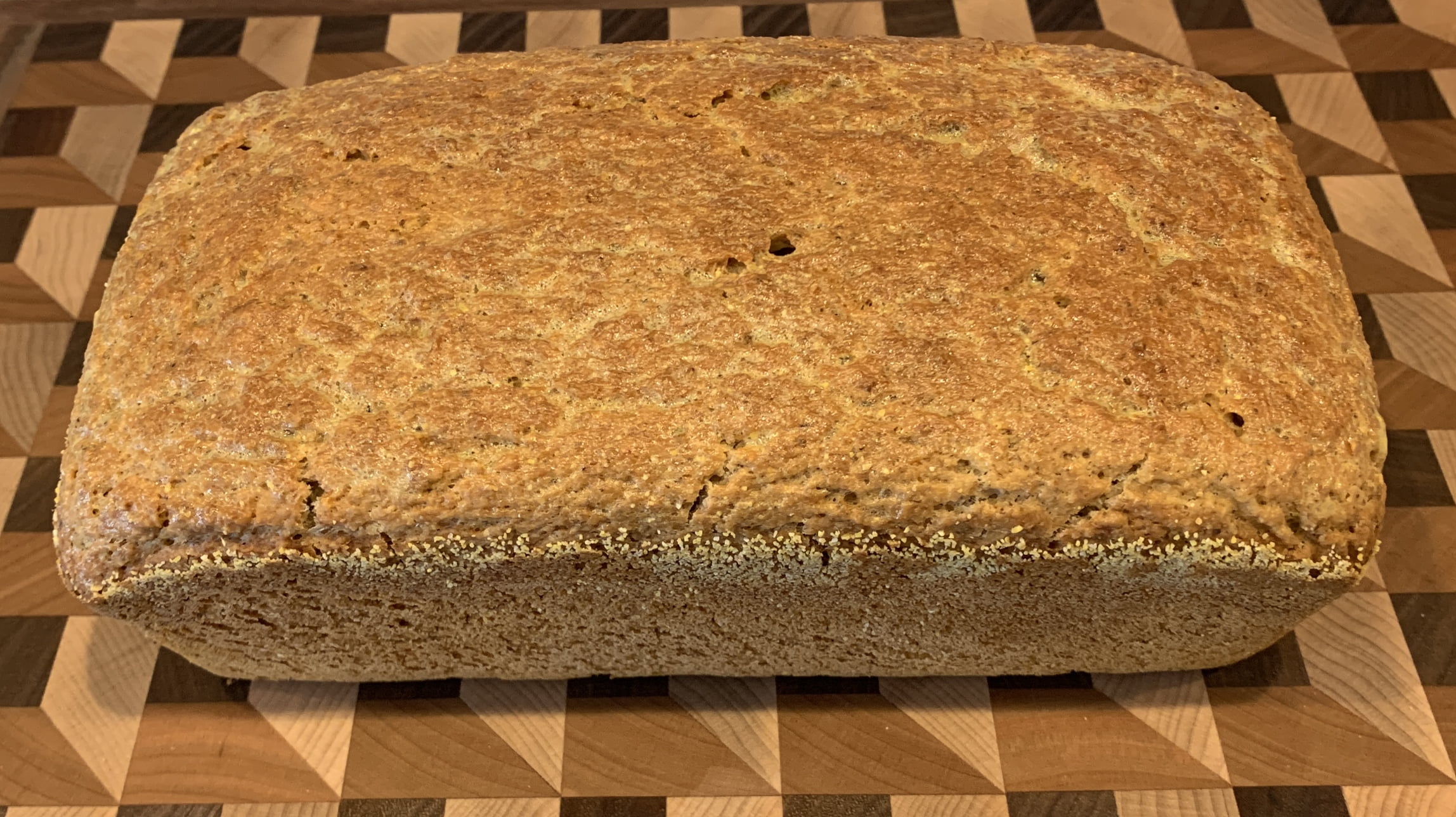This loaf turned out really nice! Moist but not gummy. The jasmine rice really comes through in the aroma but the oats and corn help give it a whole grain flavor. It has a creamy texture and will be great for grilled sandwiches and toast!